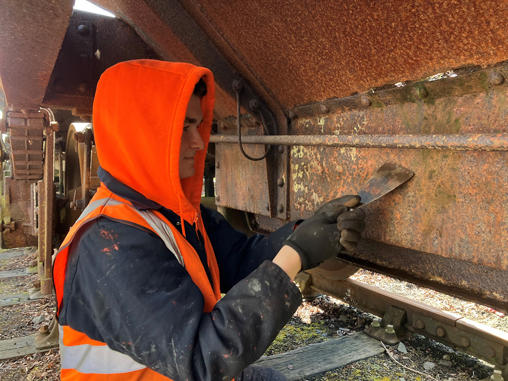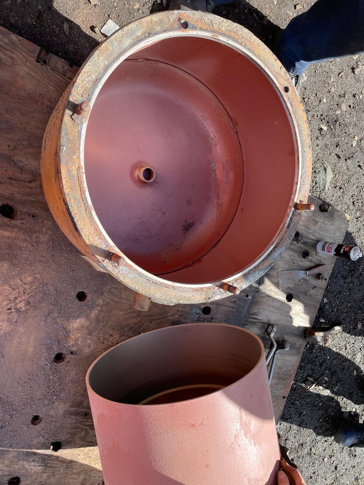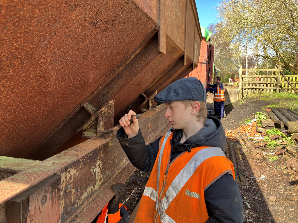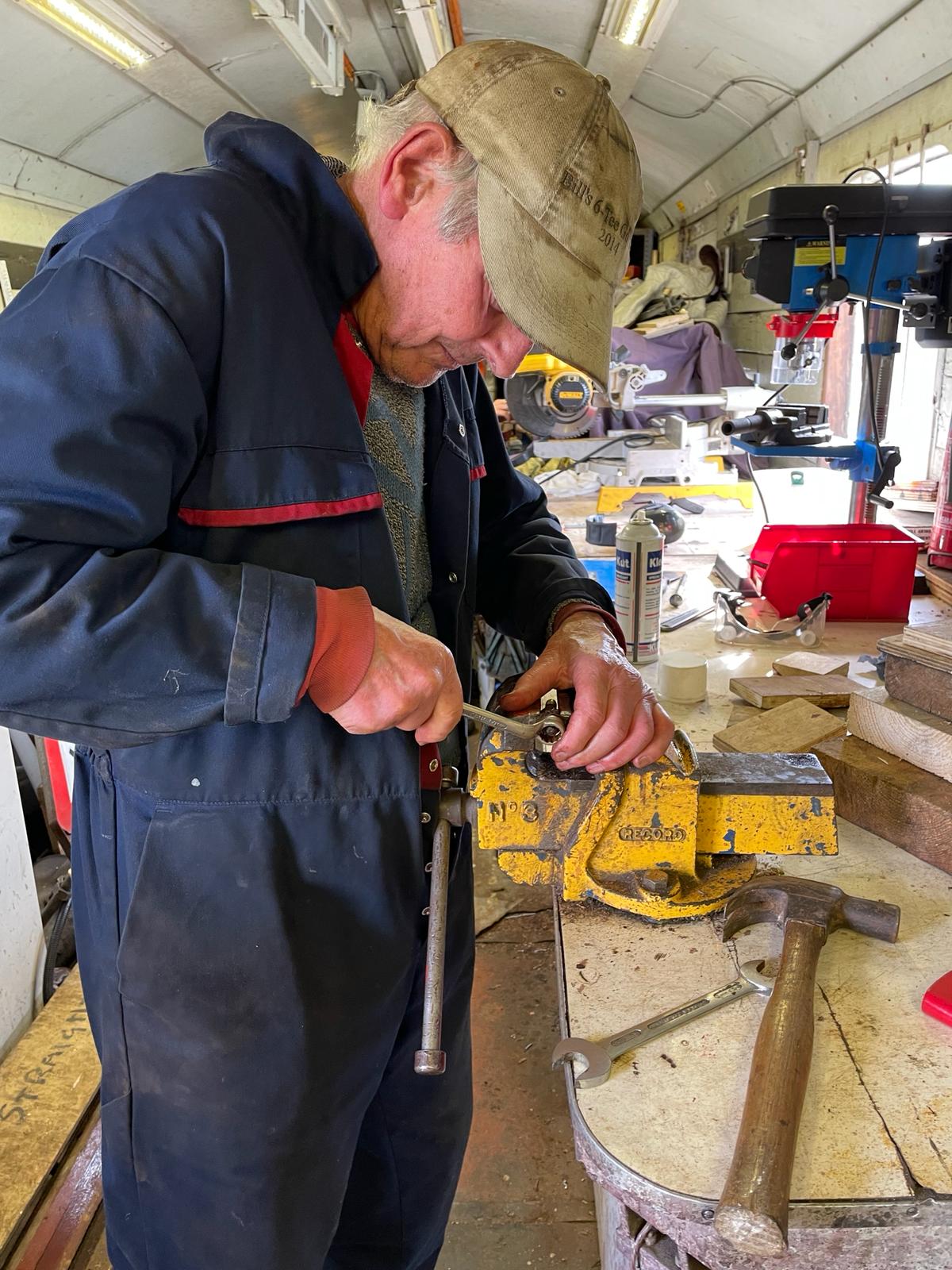 Ernie and Richard made a start on removing and refurbishing the vacuum cylinder, removing the release valve and lowering the cylinder before dismantling and cleaning it out. Oliver made a fantastic job of cleaning up the piston rod.
