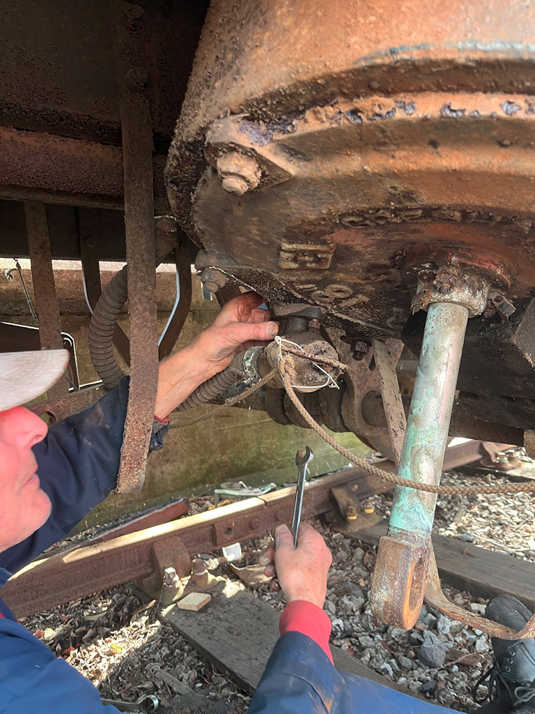 The vacuum cylinder was refitted on Monday, along with a refurbished release valve from stock and and new branch pipe. The vacuum rig was wheeled out and the overhauled system tested. A full vacuum test shall follow, that this will be after the wheelsets have been swapped and the brakes adjusted.