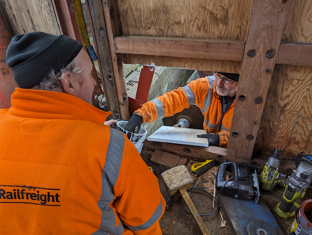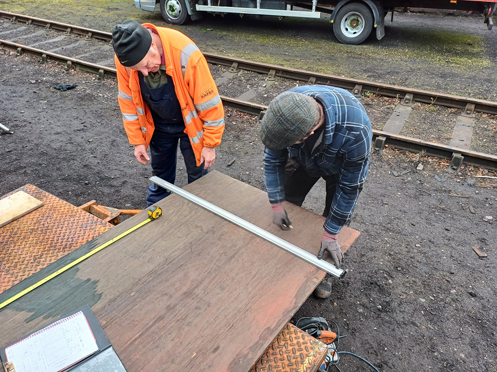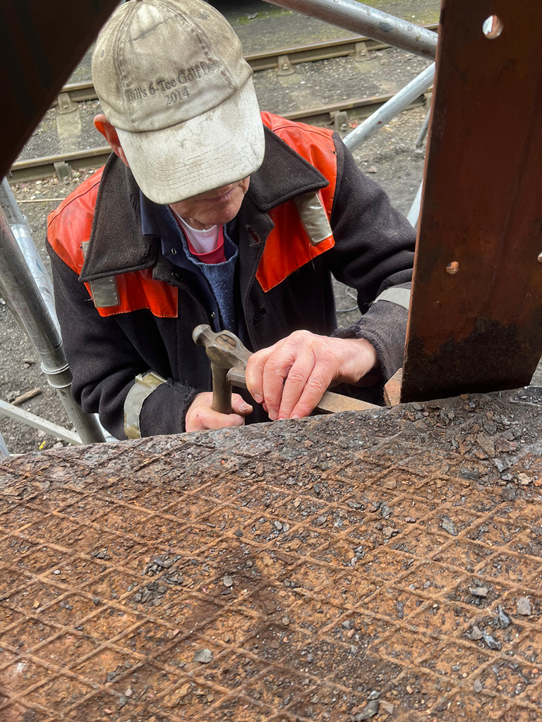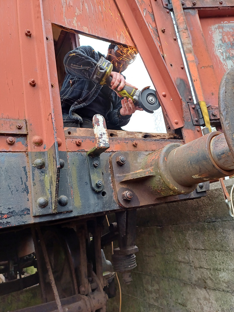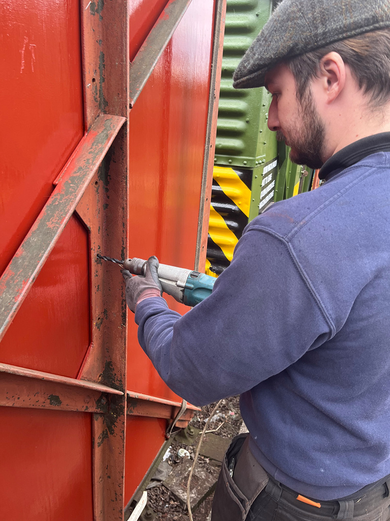 Once the side panels had been removed, the team split into two. One side focusing on cleaning down the metalwork and priming it while the other half fitted the side sheets that had been cut last week.