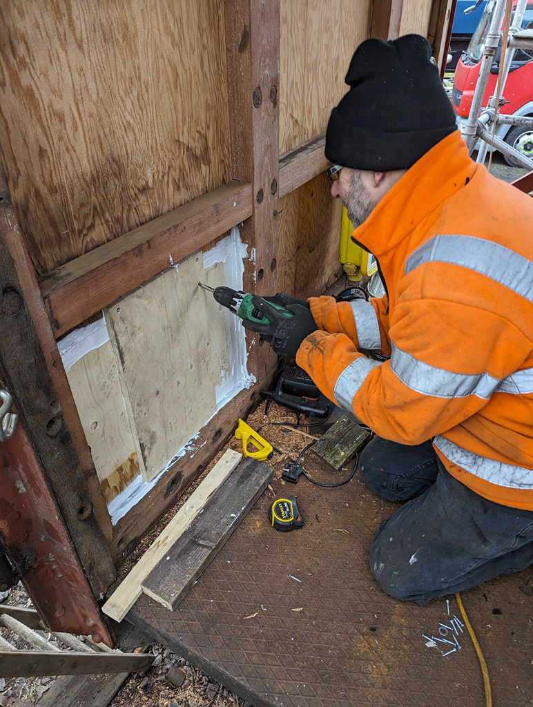 We’re continuing with the Palvan, and made a start this week by removing the interior boarding on the south end of the van, so that we could start removing the side sheets on the west side.