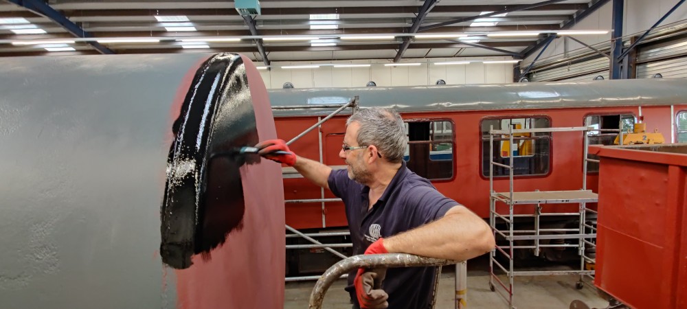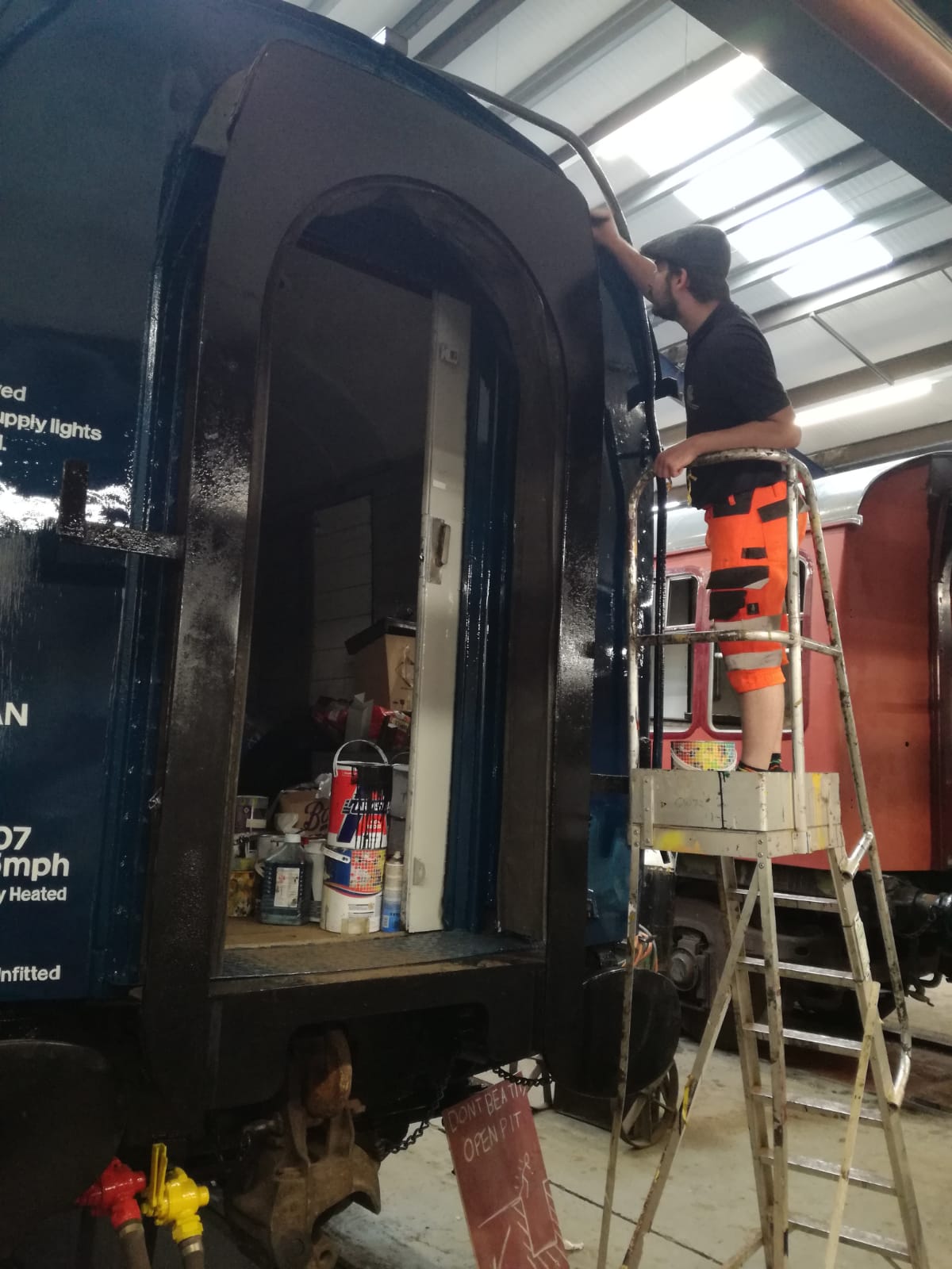 Taking our time, we got the west side completed and up to the guard’s door on the east side where we had to stop. This task was continued by Dave and I today. Between us we did the final section of bodyside and both ends of the coach, complete the repaint. There’s a few items still to sort out on the coach, but these can be done anywhere.