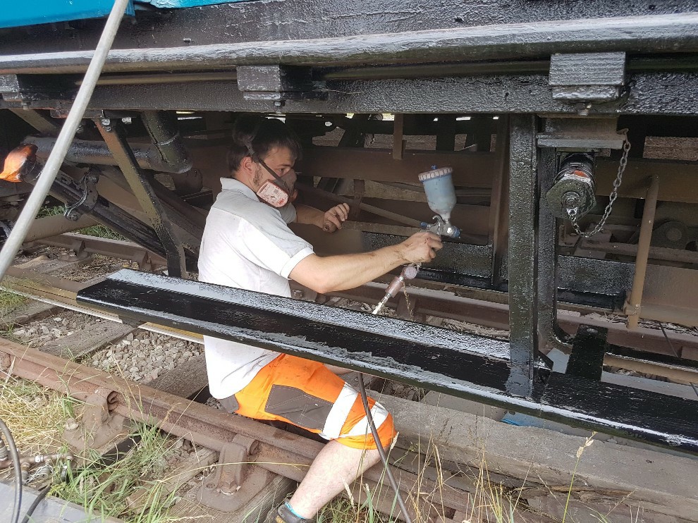 Matt polished and then painted details around the air brake distributor and reservoir.