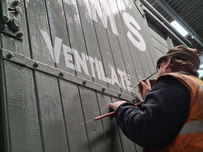Working in isolation, with other volunteers on site restricted entry to the workshop I gradually applied the livery. This being a slightly earlier style than what would have been applied to the vehicle but this fulfils the owners brief and adds further interest to the centres fleet.