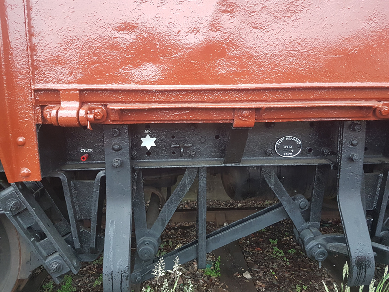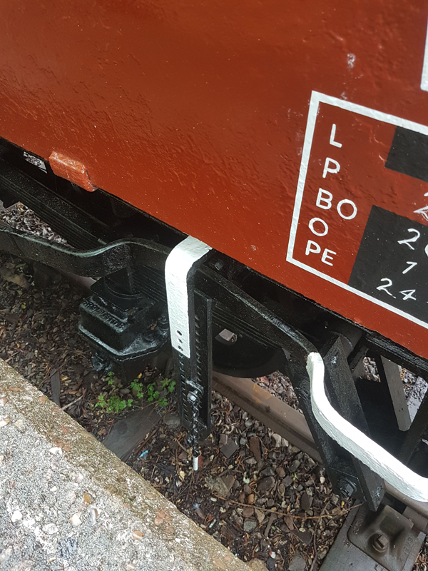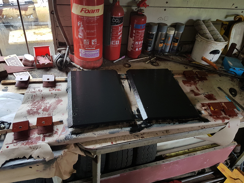 My first job was to apply the top coat to the chalkboards and brackets, followed by painting the adjustment indicators and brake pin on 280364, as pers 1970s spec.