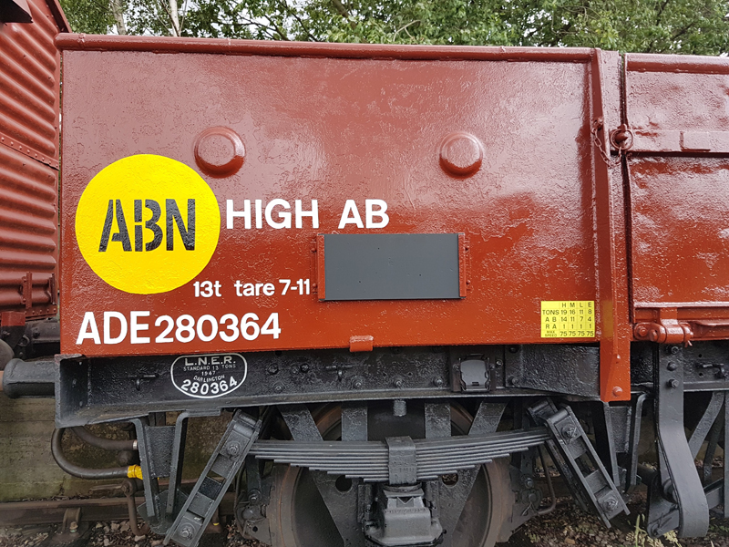 Friday afternoon I popped in and applied the ABN initials to the Air Braked Network circle on 280364 and painted areas of the data panel in preparation for dates to be applied.