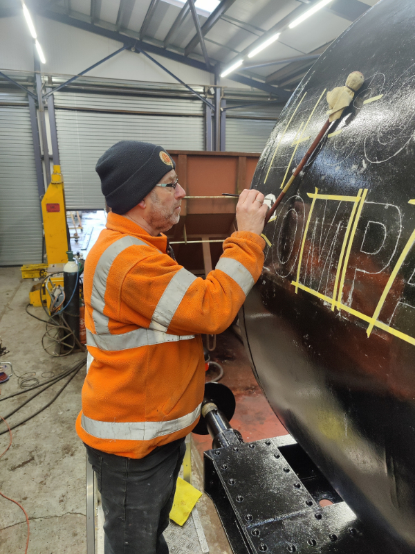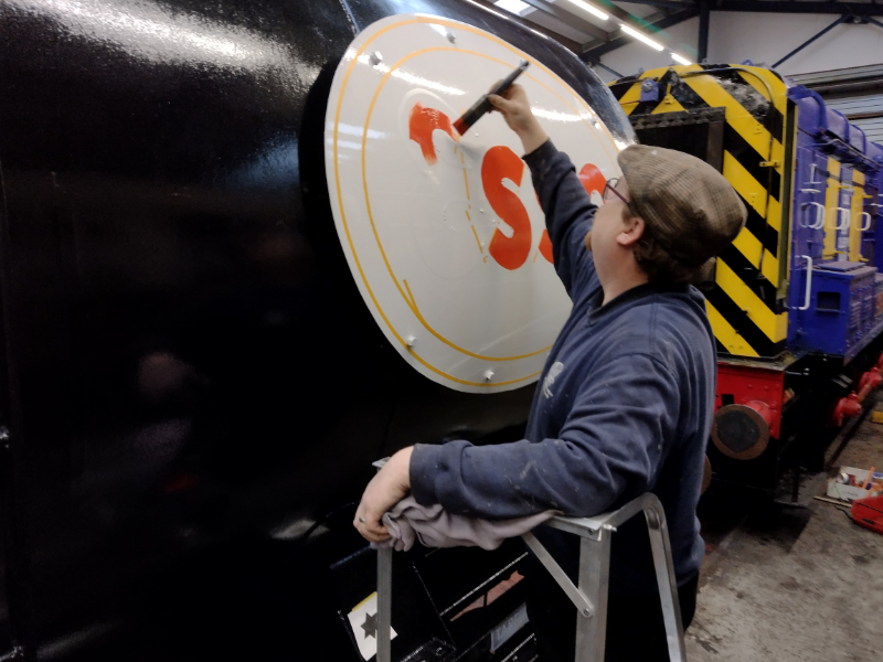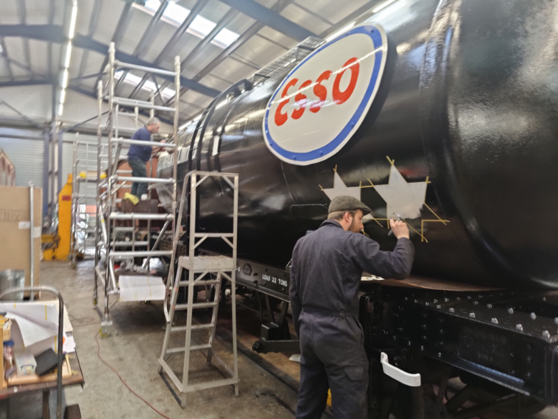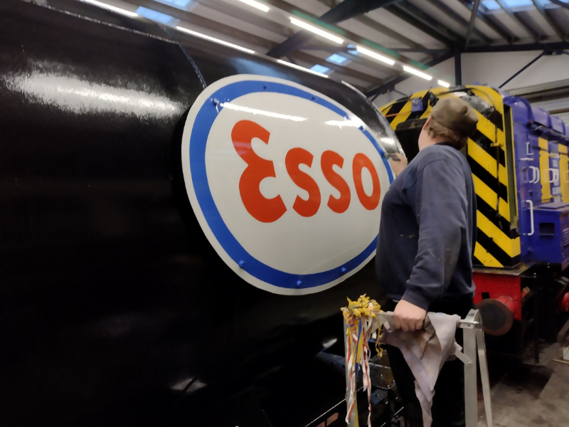 Nick had to go and do a shunt with the Class 10 to move the Grampus to Rothley for their annual exam, and the other Esso tank 3436 came back with them for some planned work. The Esso plate removed as a template before Christmas got put back on as well.