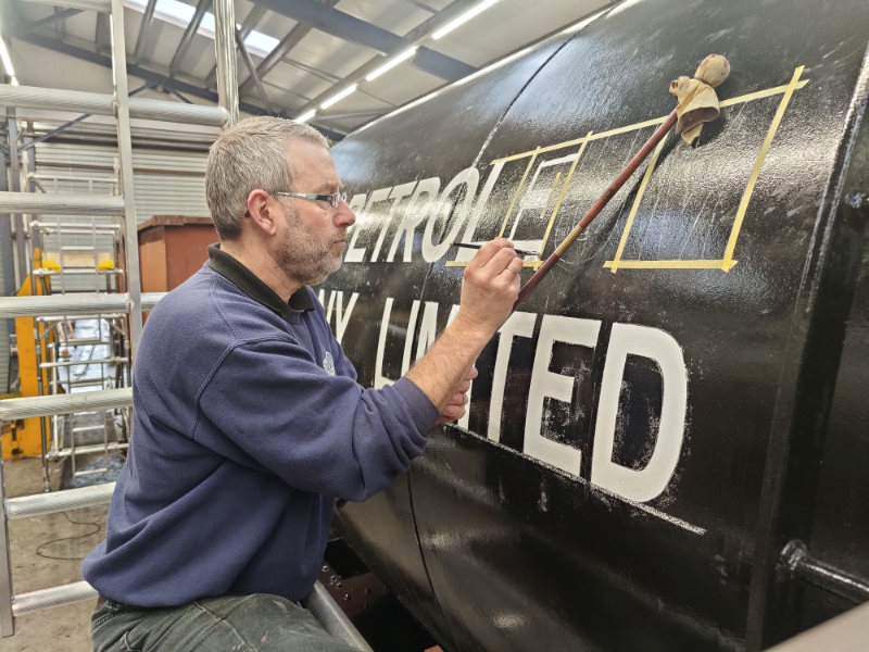 Dave got one side of the ‘Esso Petroleum’ lettering applied, which leaves the other side for next week.
