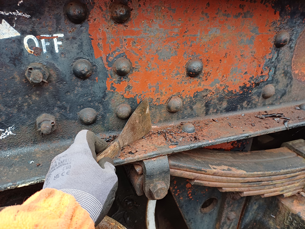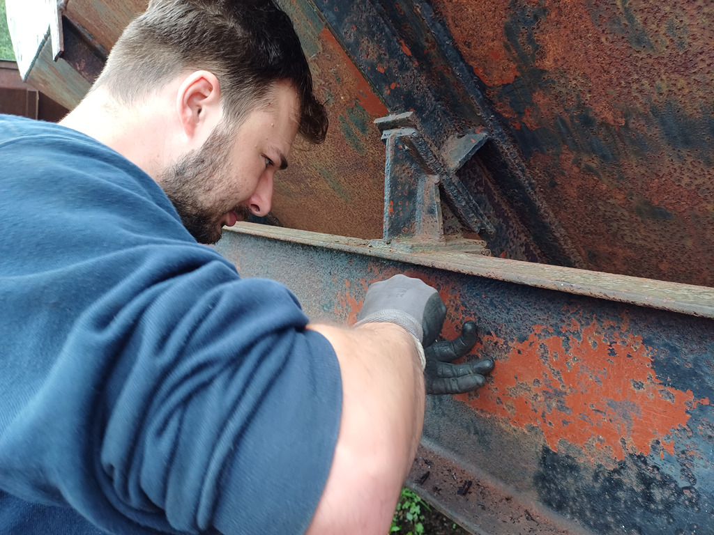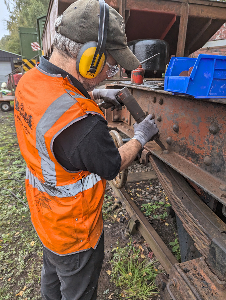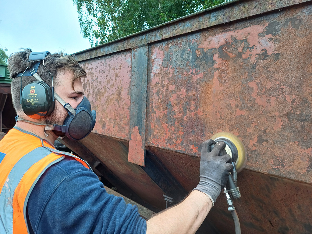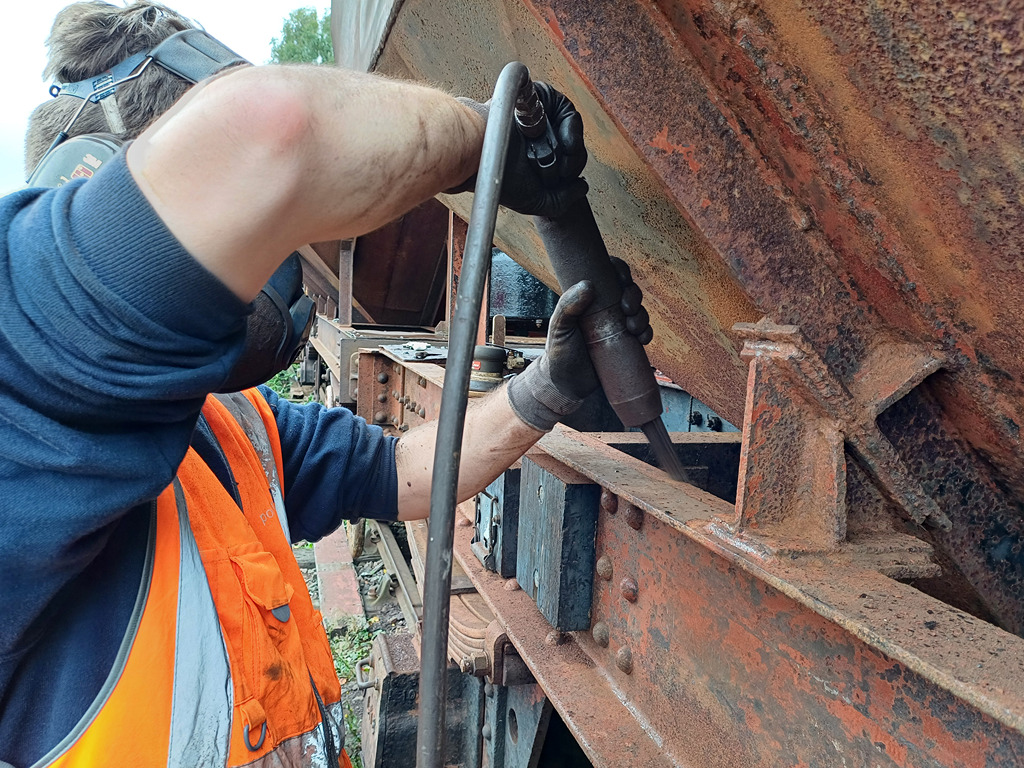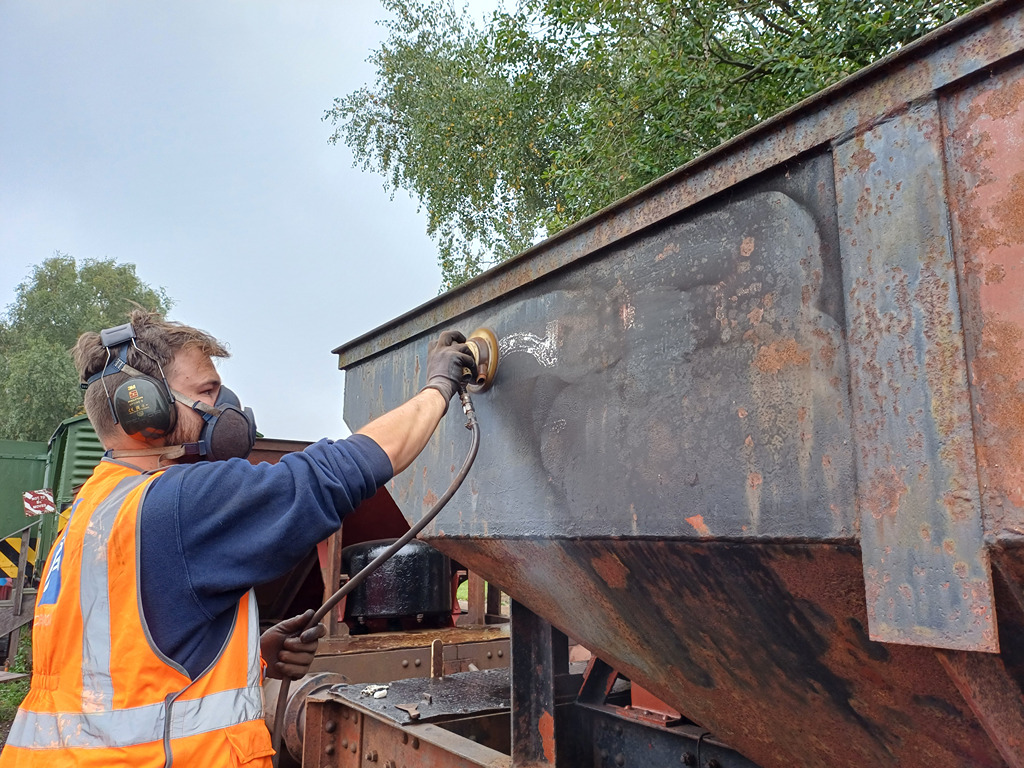 We quickly got bored with that, so moved onto striking up the Hydrovane and using the needle gun and the sanders to clean down the solebar and hopper respectively.