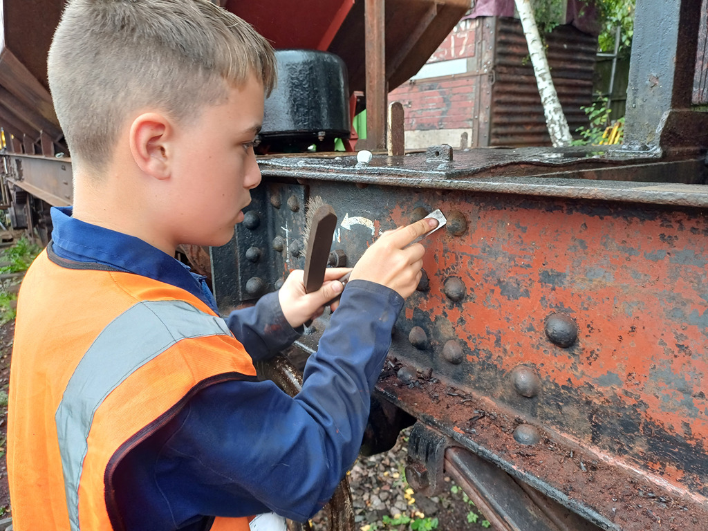 Dave and I took a brief interlude from the sanding/de-scaling to check a R Y Pickering builders plate for the TEA that Dave had drew up and 3D printed. I also brought in a piece of BR history, a Metallurgical Defect Meter.
