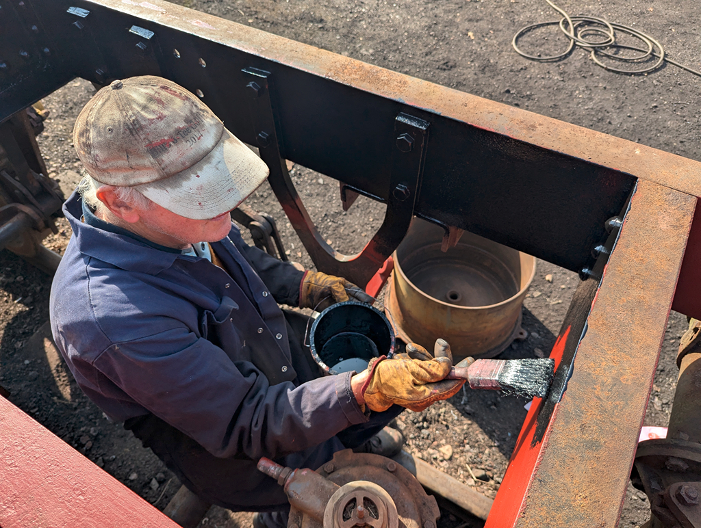 The primer came out to treat the cleaned down chassis areas, with quick progress being made. A kit of vacuum cylinder parts was retrieved from the van train in the down lie-by, which we’ll revisit later.