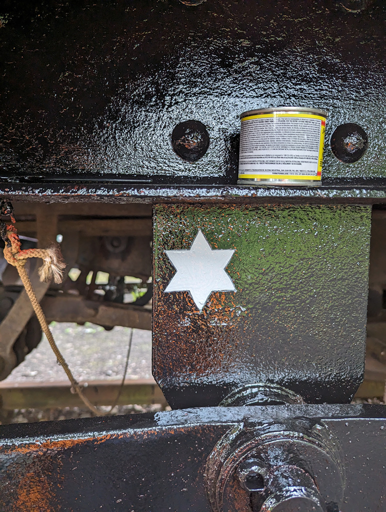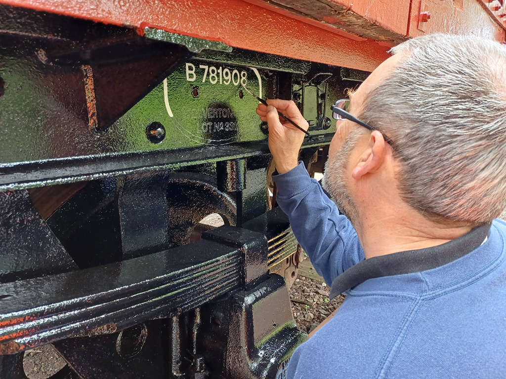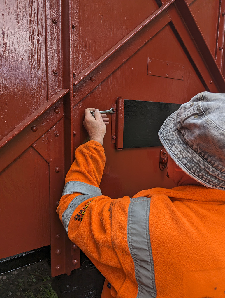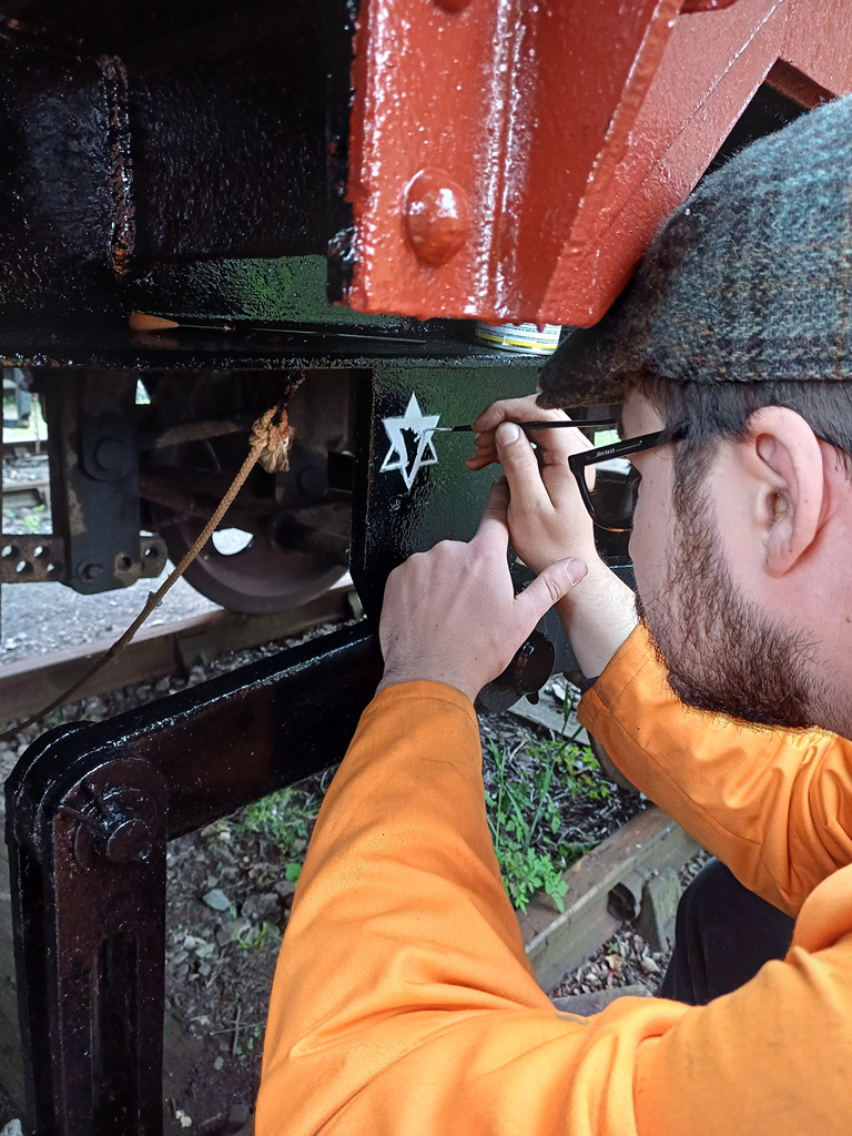 After a quick look round at Loughborough, we went back to Quorn and got on with the signwriting. Dave on the wagon plate, and me on the vacuum release chord star.