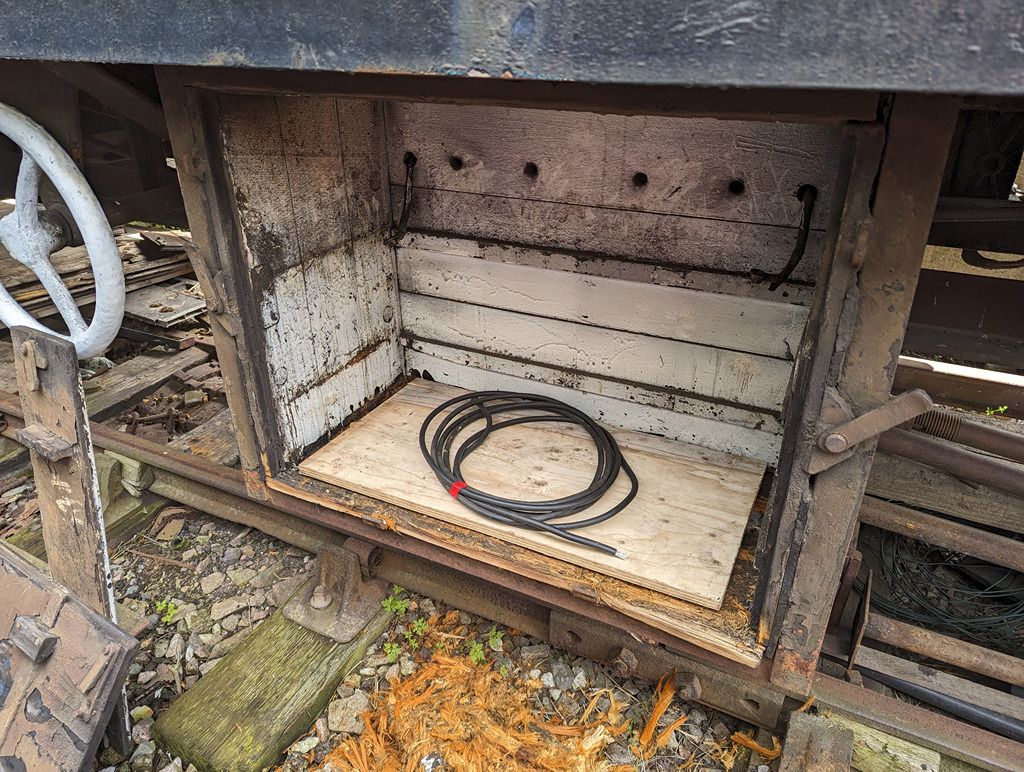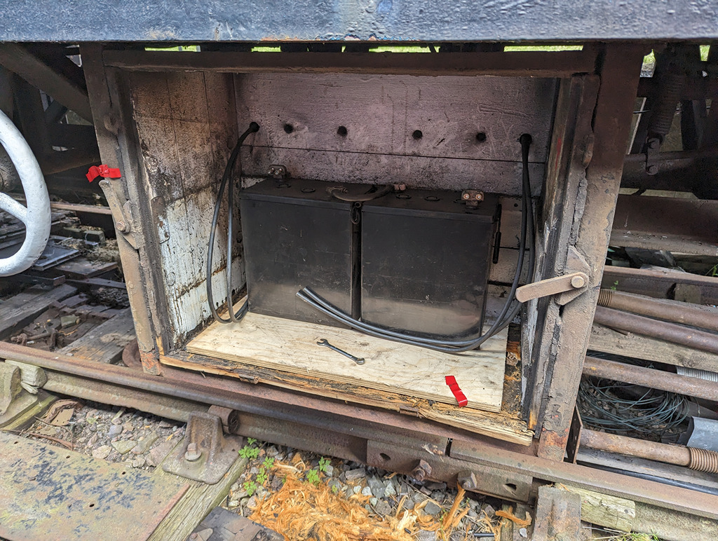 I disconnected and removed the current batteries in the GUV. It was thought the cells were life expired, however, one of the cell connections had corroded and broken, so there might be hope in them yet. However, with some new batteries sat there waiting to go in, the decision was made to replace. We can then look at the others at our leisure. I made up new connection tails, and am just waiting for the copper tube terminals for the cable ends.