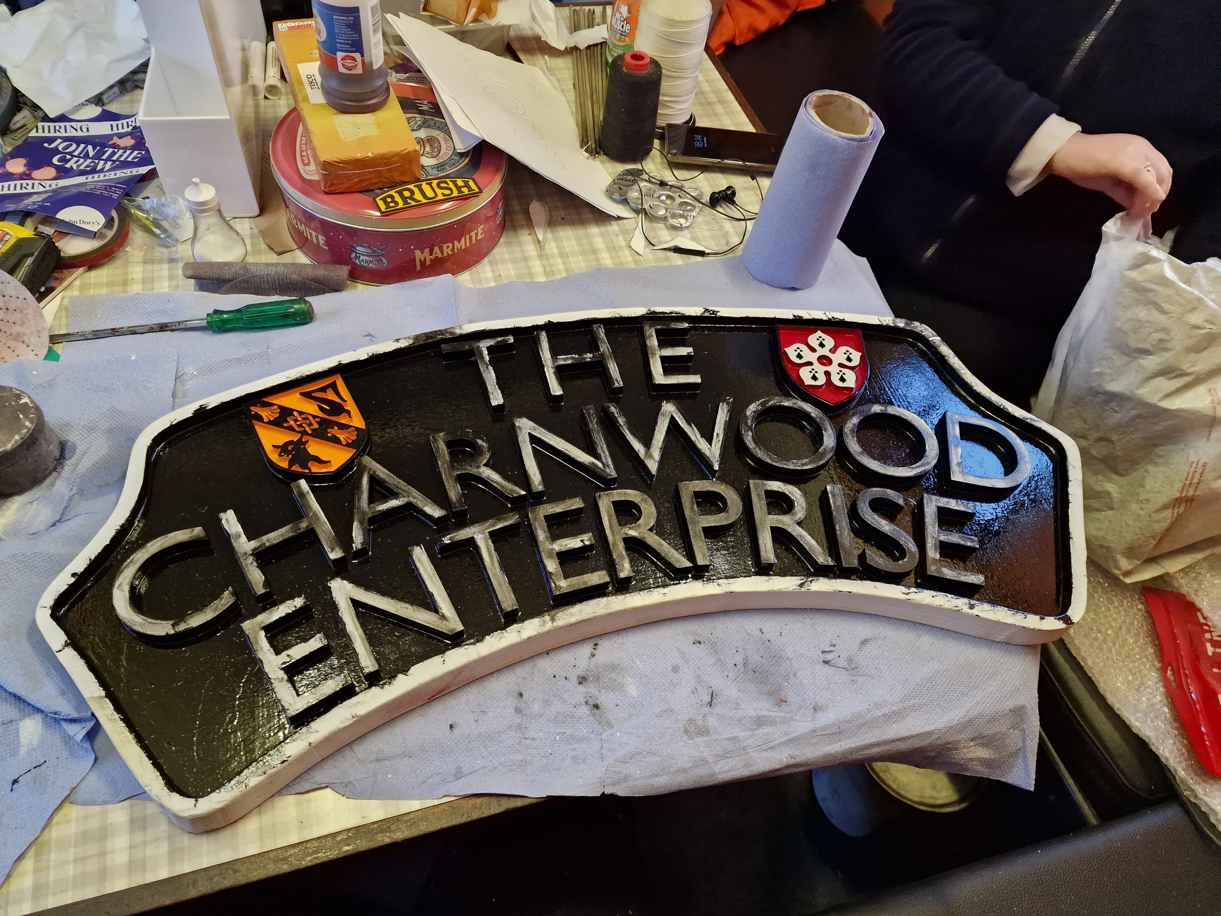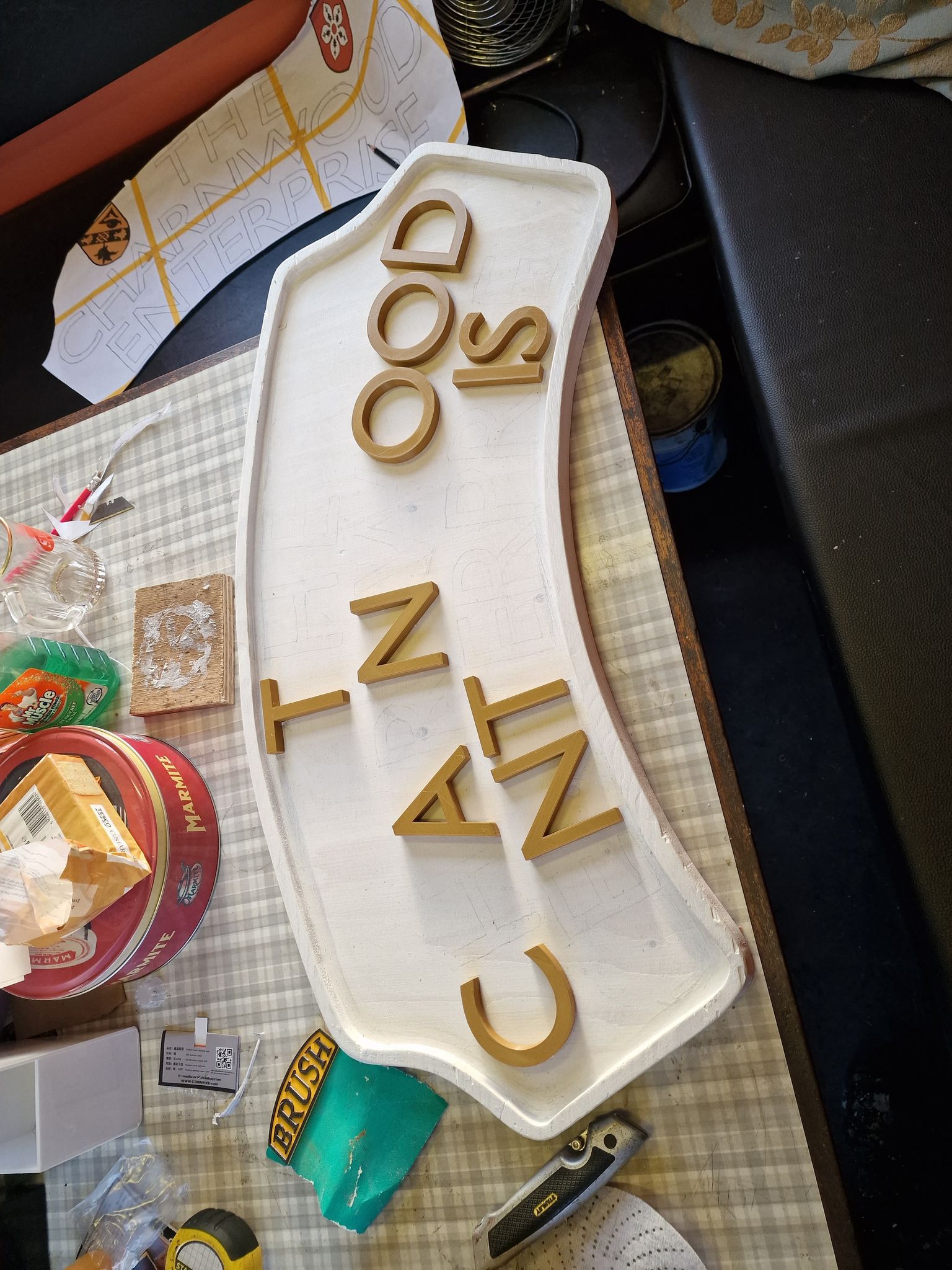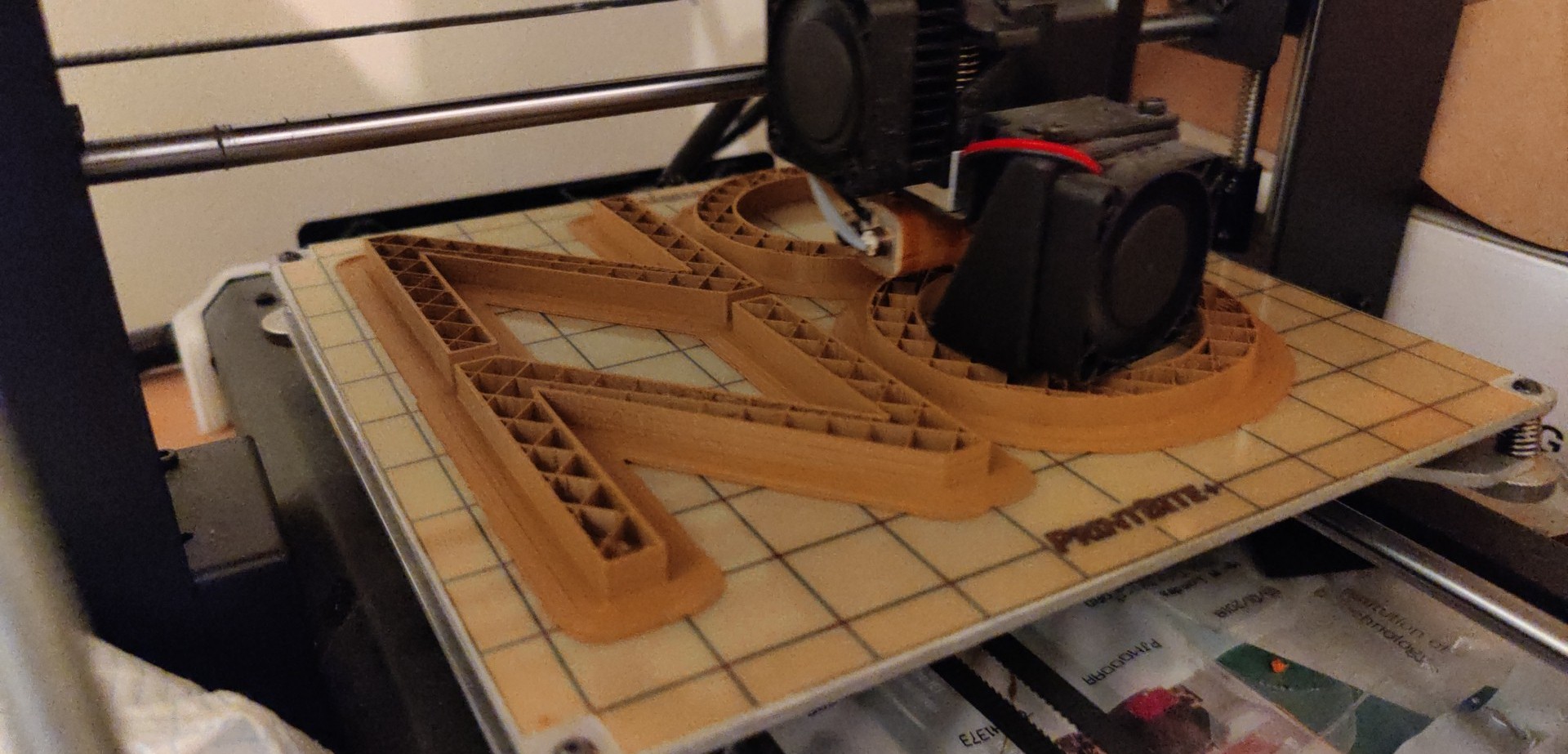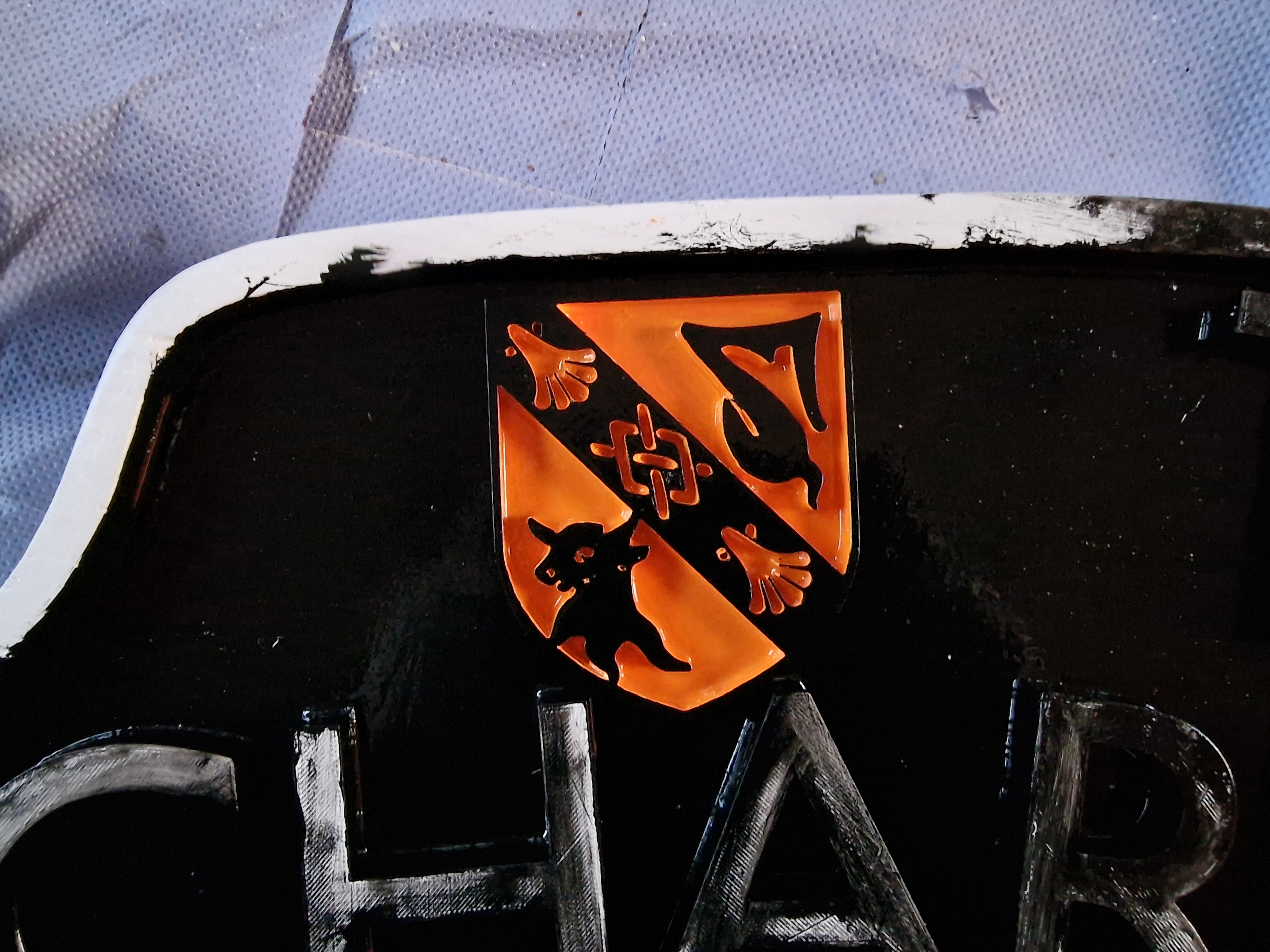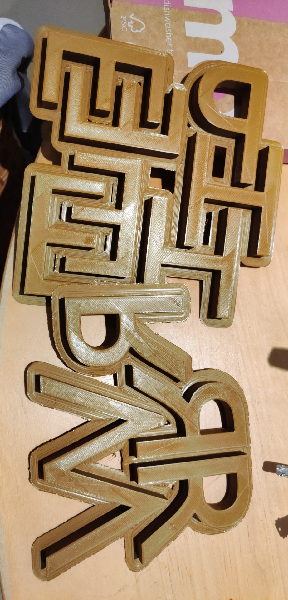 In other news, we’ve been making a headboard! Matt sent me the letters as files, and during the week I extruded them in CAD software and then set about 3D printing the letters and the crests. Matt has done the rest fo the work, cutting out the wood, priming in and sticking each letter down.