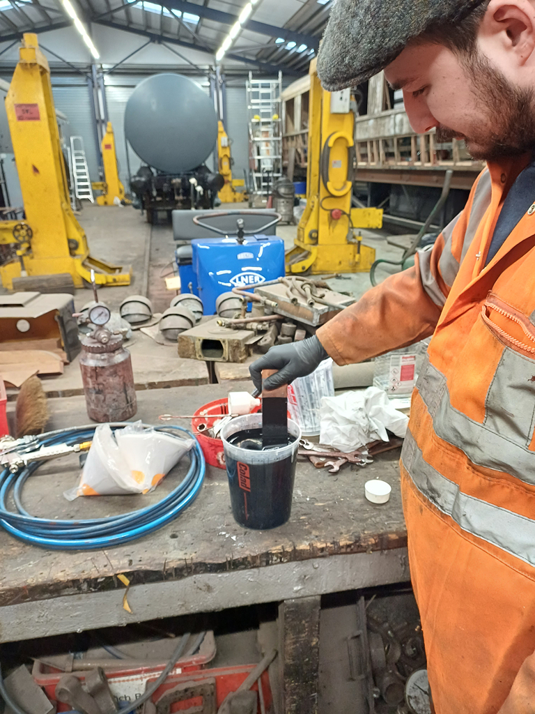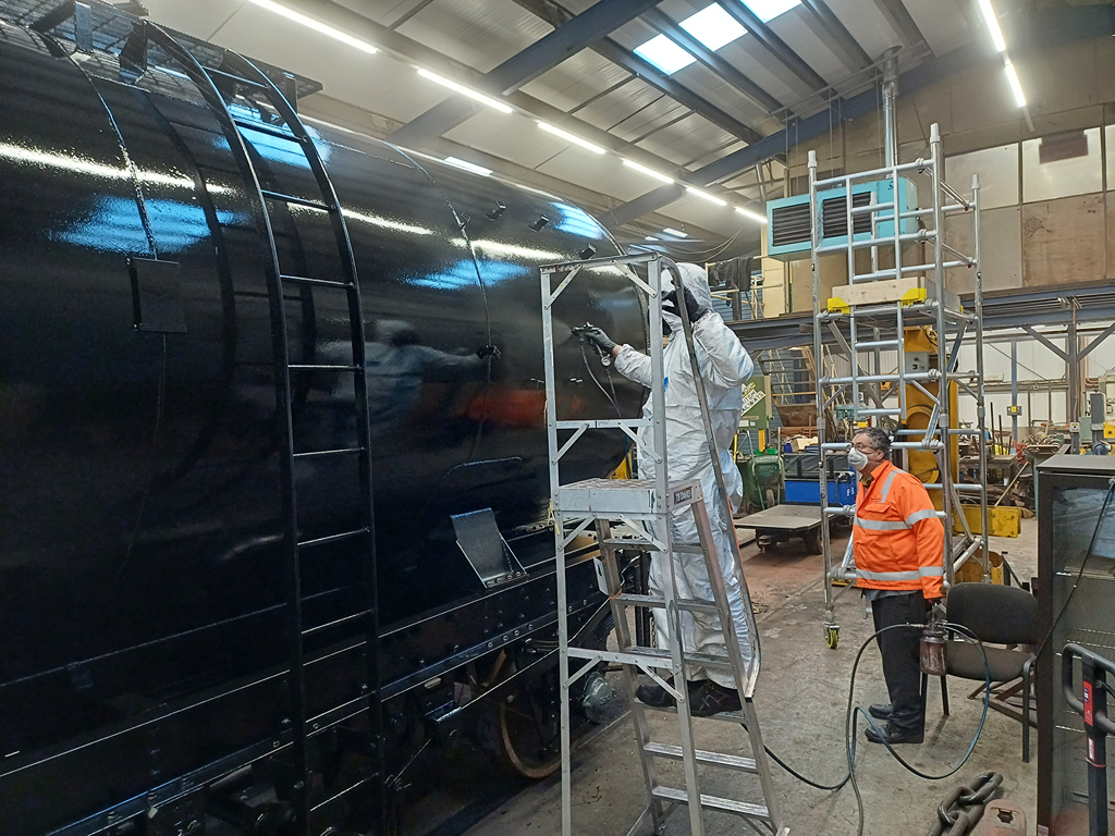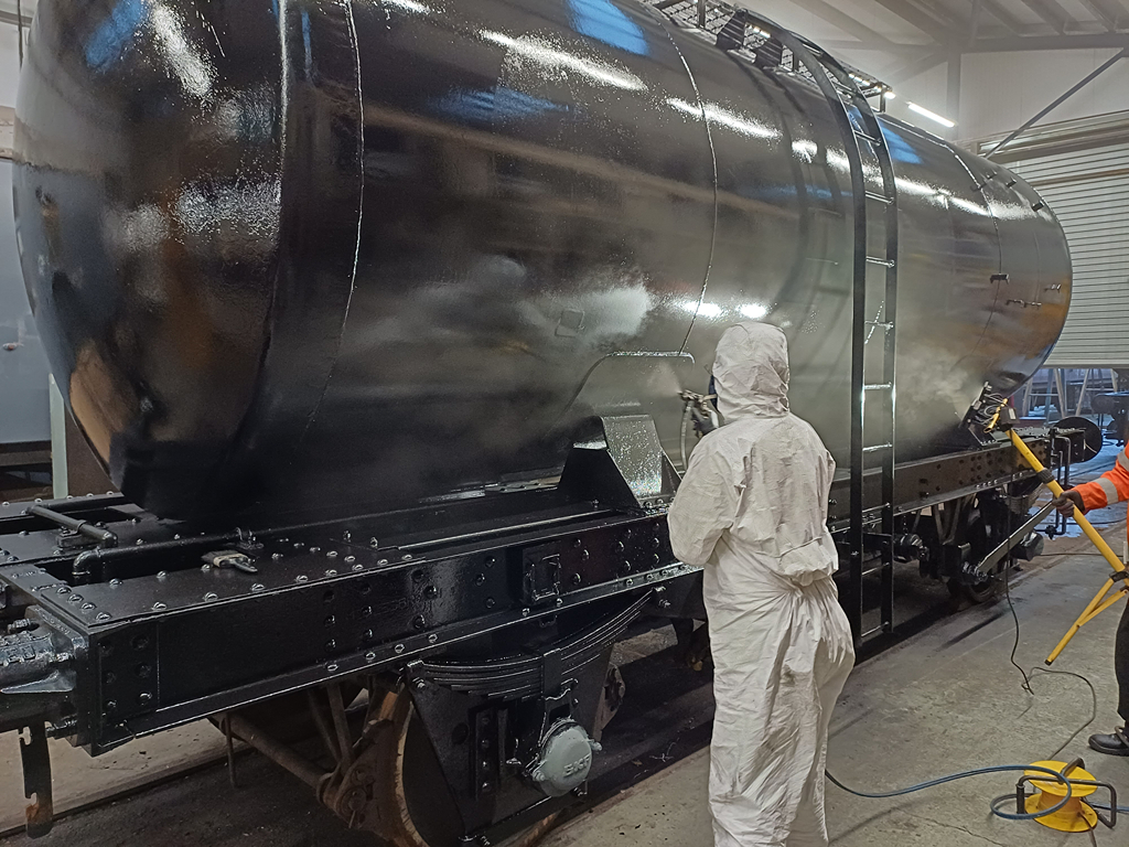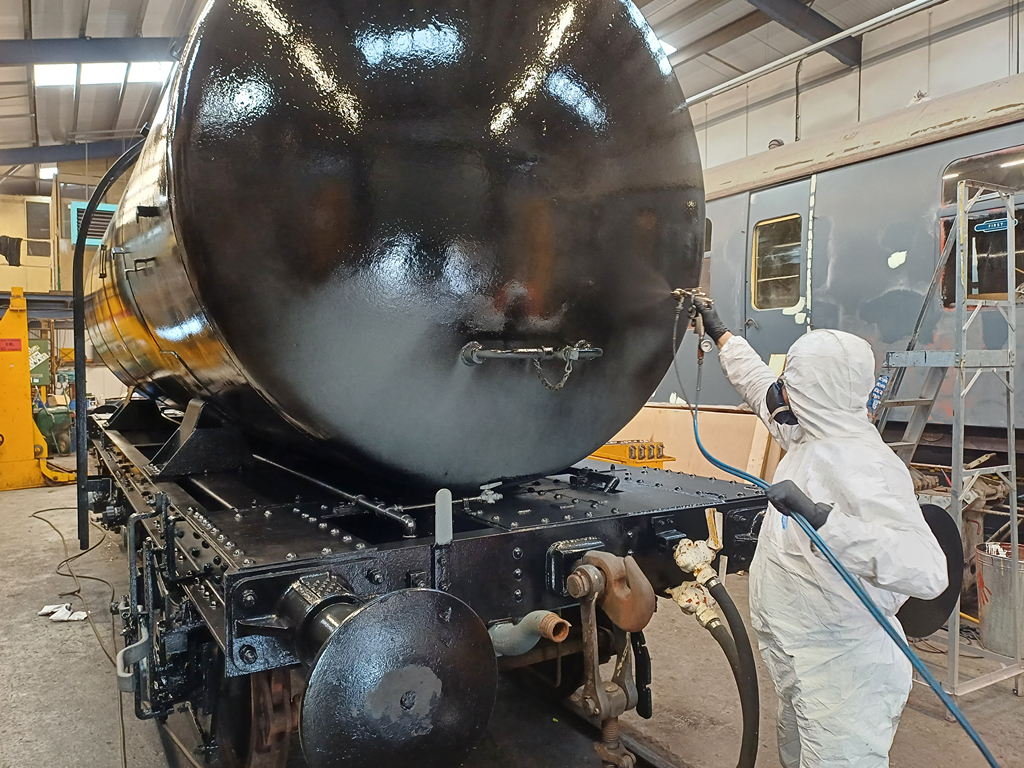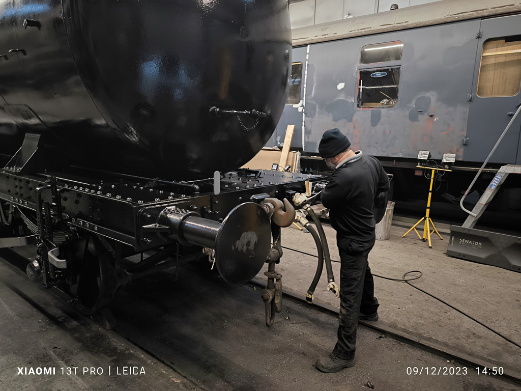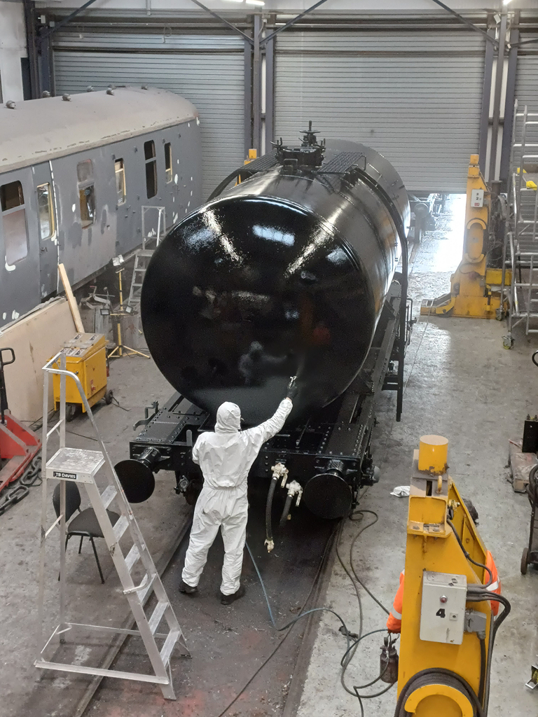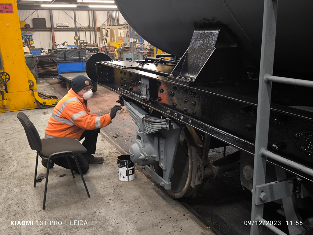 Hello all, and welcome to another update. We are still continuing our push on the tanks, with this week picking up where we left off with 3777. Tom and Mark both popped in during the week to paint some more of the difficult areas, and then carried on with both headstocks and both solebars!