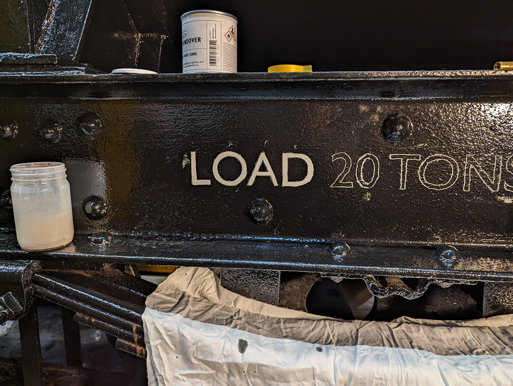 Sunday was a little more sedate with Nick and I on site. I concentrated on some of the signwriting on A6090, while Nick used the portable lamps and touched in any area of underframe that had been missed or needed a second coat.