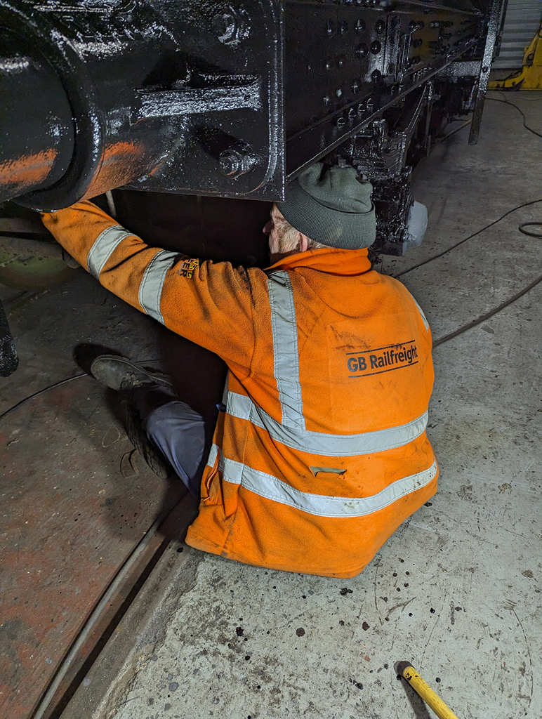 Dave also tweaked the south end air brake hose as this had been fitted 180 degrees out, and also made a start on picking out some of the plates on A6090.