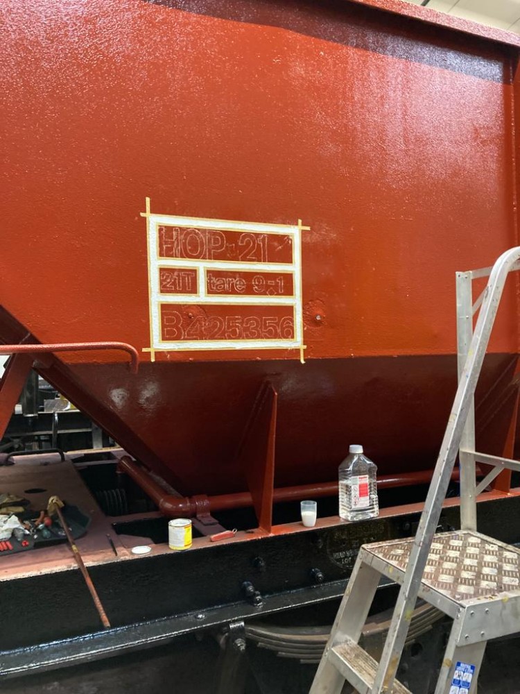 We’re now nearing the end of the work on the hopper, leaving that at Rothley for its axle repair for us to go back to Quorn for the Plate wagon. Next weekend will be more of the same on the hopper though, with the west side solebar signwriting to do and then the whole east side still to tackle. See you then!