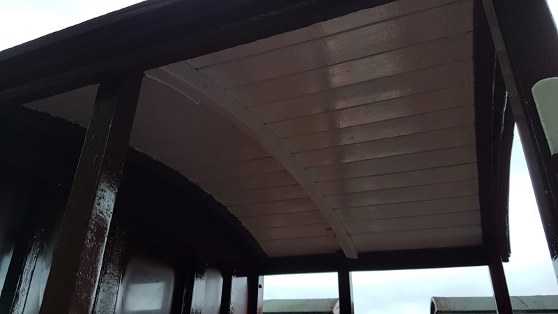 On to Sunday, I started with applying coats of white to the veranda ceilings, With Nick and Jake turning their attention to the underframe first scraping down and applying bitumen.