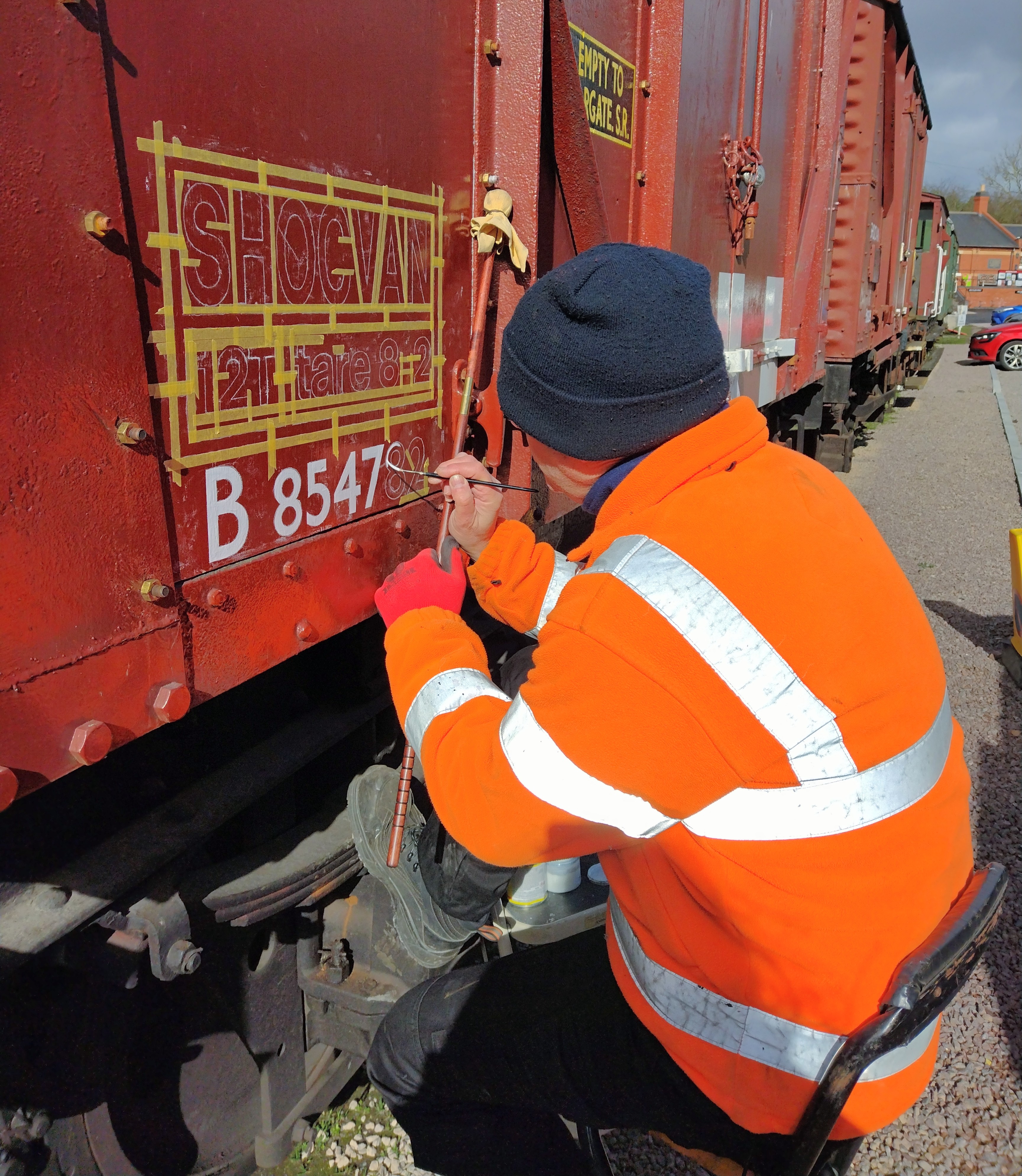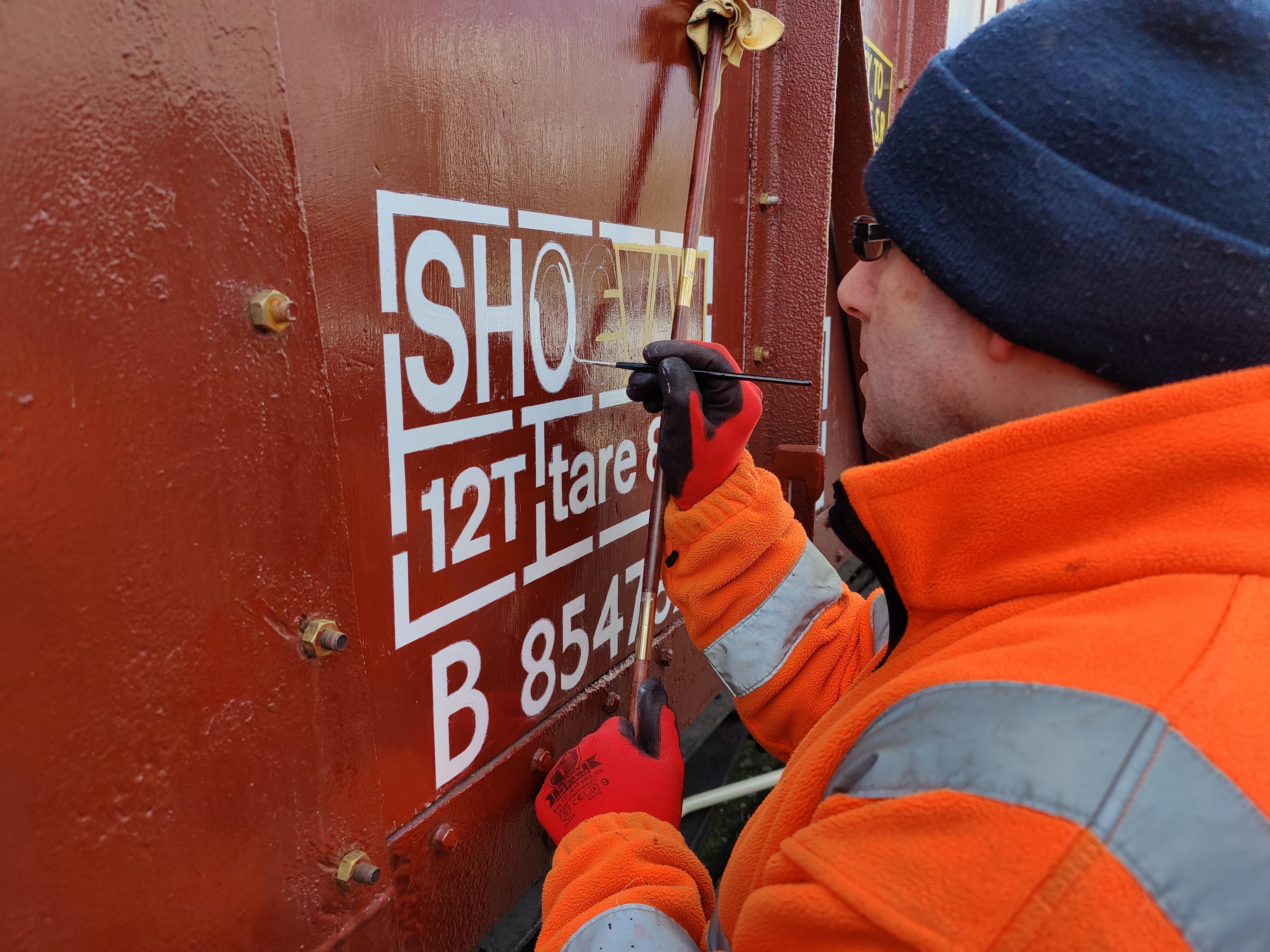 Dave kicked off by continuing the signwriting on B854782, it being the only van that didn’t get signwritten last week. There is quite a lot on this van, with us having gone with the Later style BR-era livery when this vehiicle was painted.