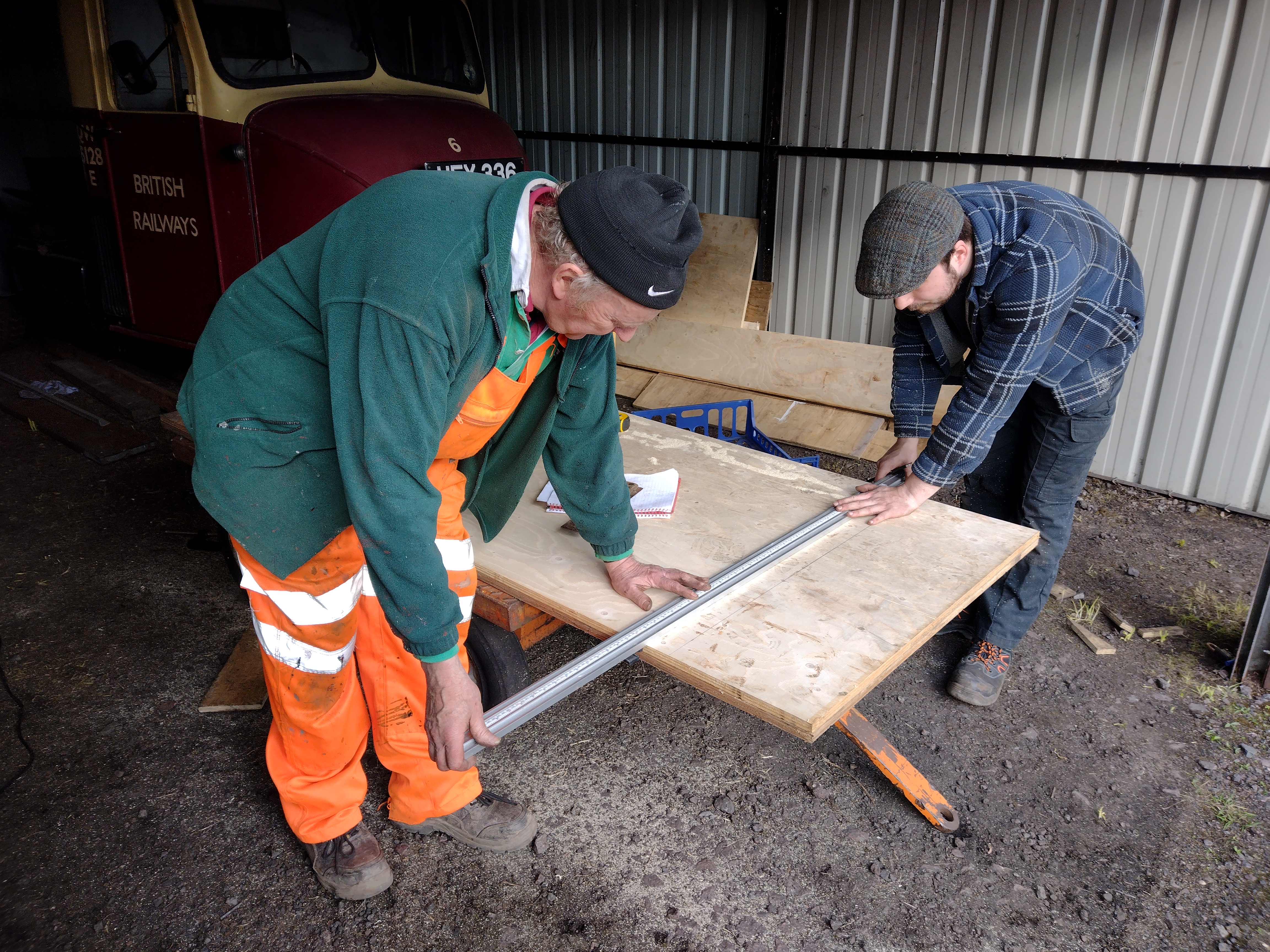 Nick and I, assited by Eireni, checked the measurements for the panels we are about to change. Over the years we’ve got quite a few measurments jotted down for the van body panels, but like the age old expression goes measure twice, cut once! B784409 has also been selected to have another side sheet changed, but for this we had to dismantle it’s internal racking. This will initially be stored, but then redeployed.
