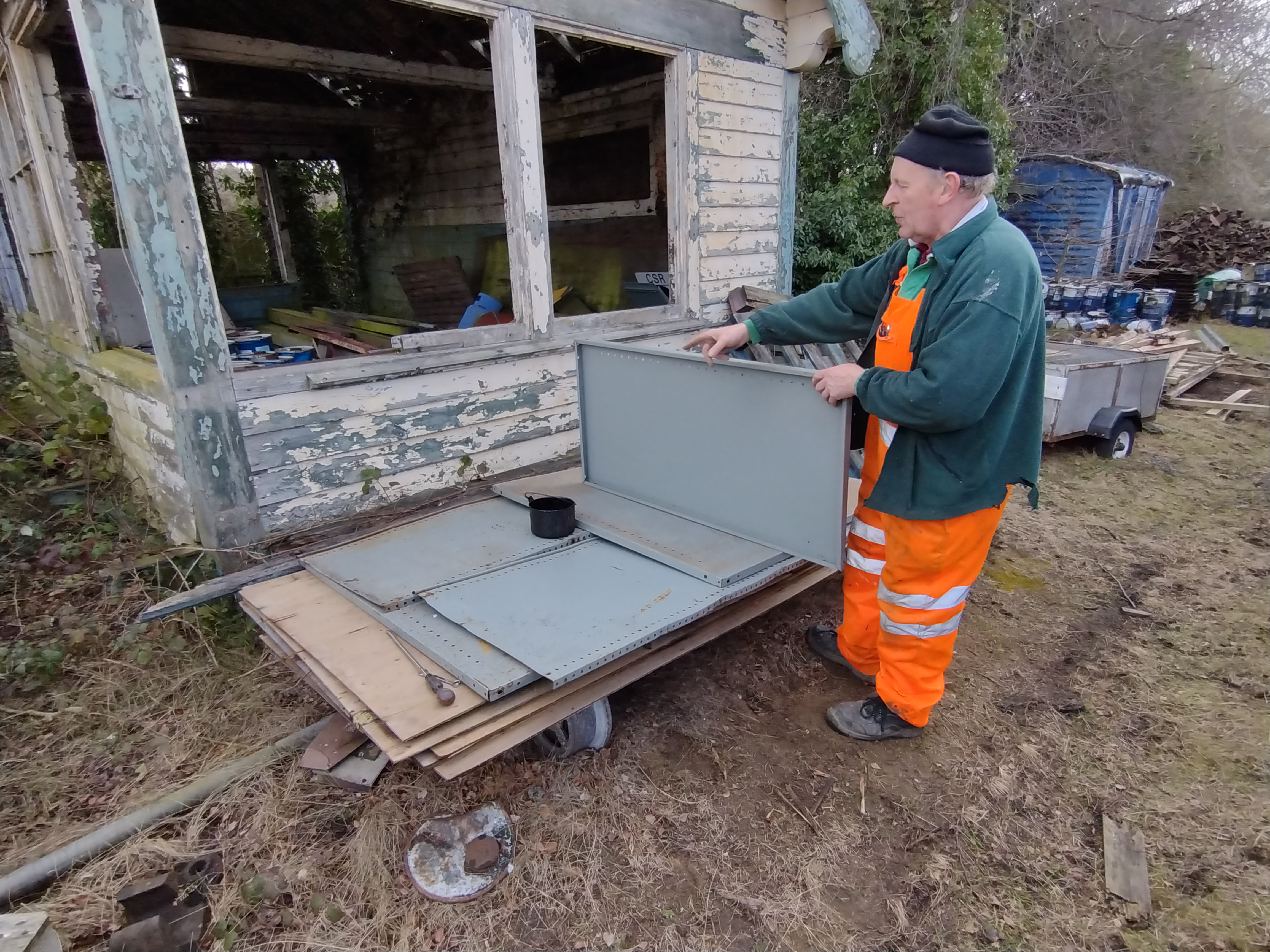I, unfortuantely, couldn’t be onsite Sunday but Nick continued on the side sheets by painting them into undercoat. Nick also straighten out some of the racking dismantled yesterday. Dave washed and polished Madge, ready for Railways at Work. Matt was also onsite and sorted some of the prop items for the gala. Nick and Dave also removed a piece of the Plate that was dangling off. This will be re-attached when we get round to doing this wagon.