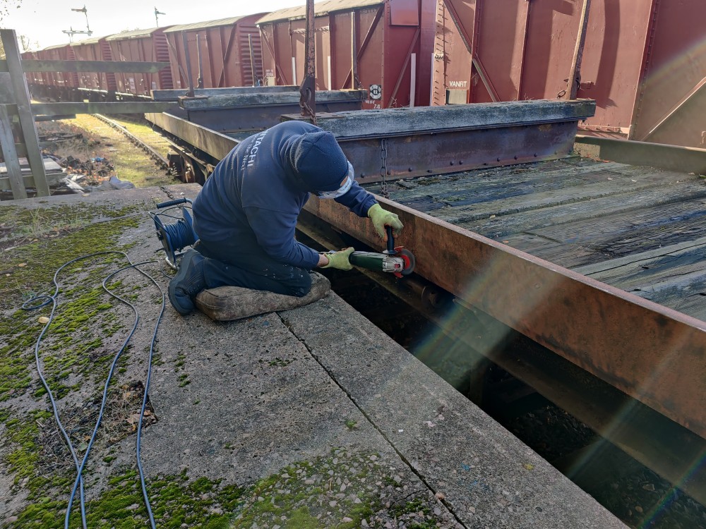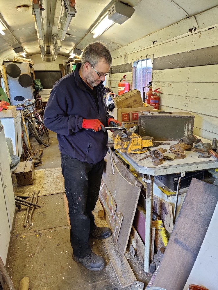 Dave continued with the angle grinder on the Bogie Bolster to finish wire brushing the bodywork to get this vehicle progressed. Once complete, he overhauled the rest of our release valves so we have plenty ready to use.