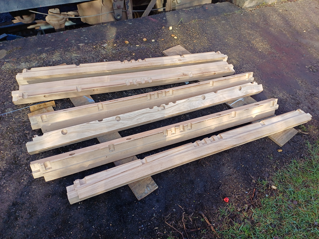 We’ve now taken delivery of 6 hardwood door ‘noggins’ (top door frames) for the vans, which will help us finish the work on the 4 currently at Rothley. These will be stored until the vans make their way back to Quorn.