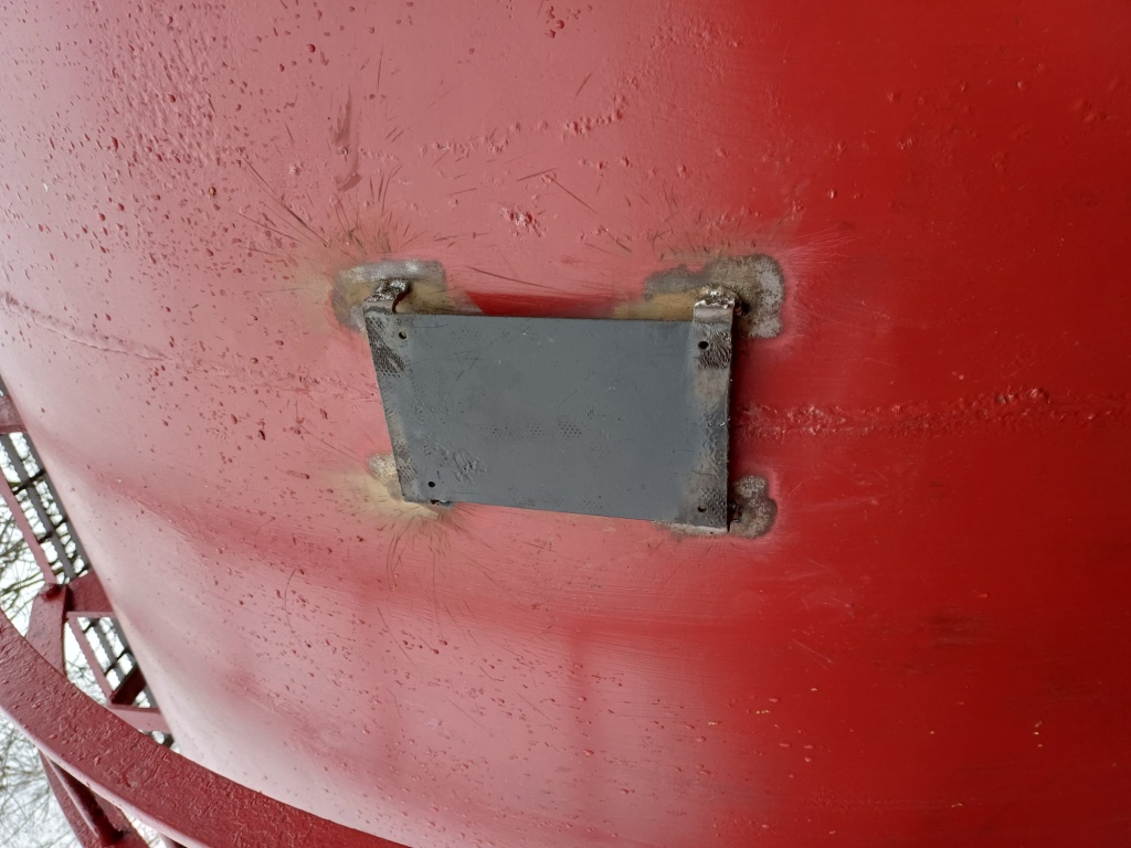 The overhead warning flash plate that had to be removed from one side of tank 3854 last year (to allow for the Esso text), was repaired and re-fitted in the normal position in the centre of the wagon. To do this some additional length was welded onto the plate lugs, which were then dressed before the the plate was welded into place.