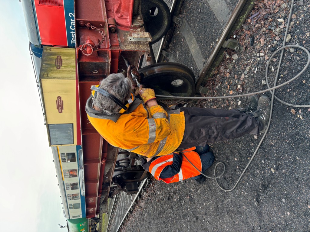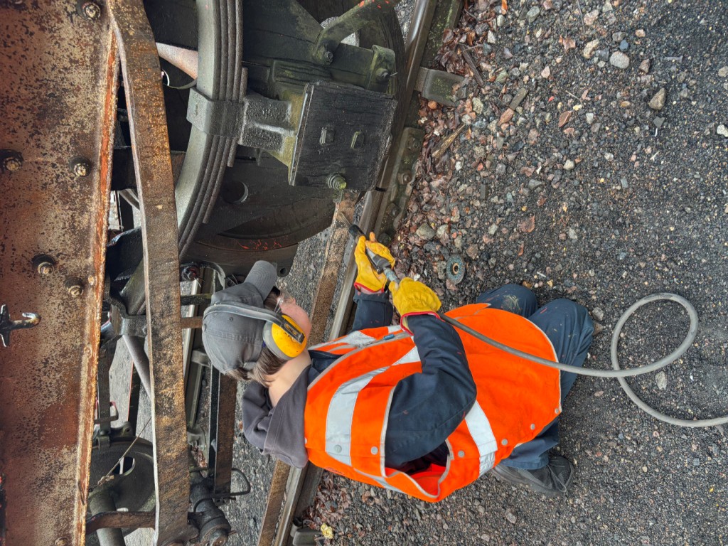 Mark, Tom, Oliver and Daniel progressed bodyside and underframe paint removal from the Lowfit using needle guns and scrapers. Red oxide primer was then applied to the prepared areas.