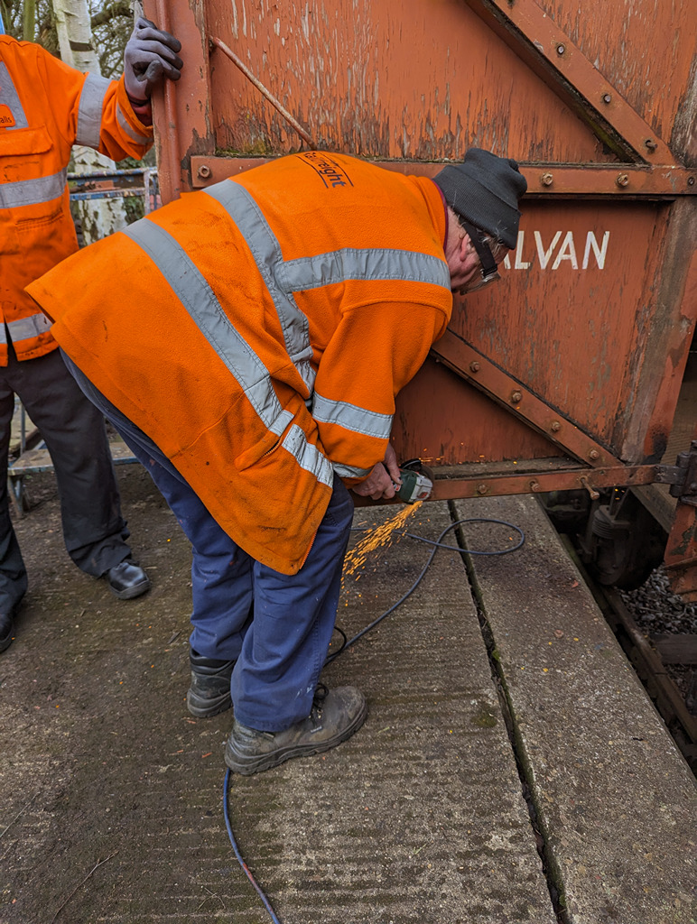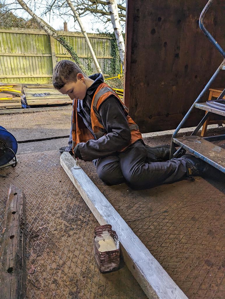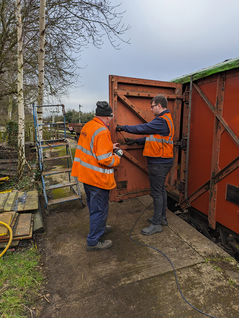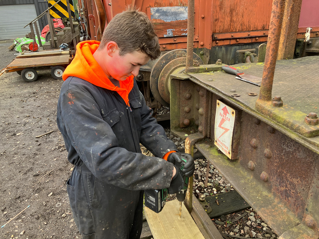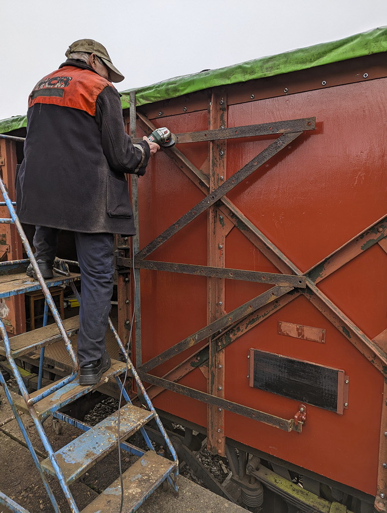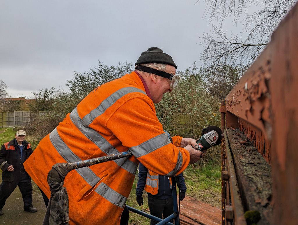 The other half of the team replaced a foot step on each one of the Catfish, removing, cutting a new one and then treating them with preservative. Then the scrapers came out and they got to cleaning down more of the Catfish’s bodywork, getting them that one step closer to paint. Nick also finsihed off by undoing or cutting most of the bolts on the other door of the pair, getting it ready for next week.
