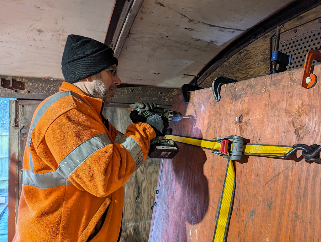 Hello everyone, and welcome to another update from Quorn. This week we’ve continued with the Palvan, making a start on the doors. We started on the dock side, and got cracking removing one of the two doors.