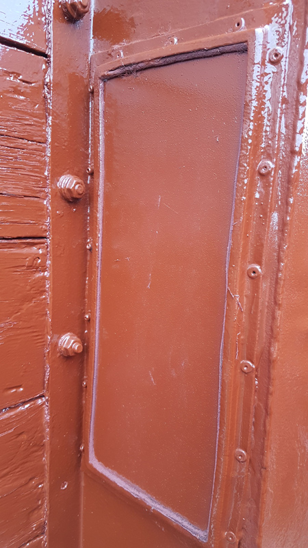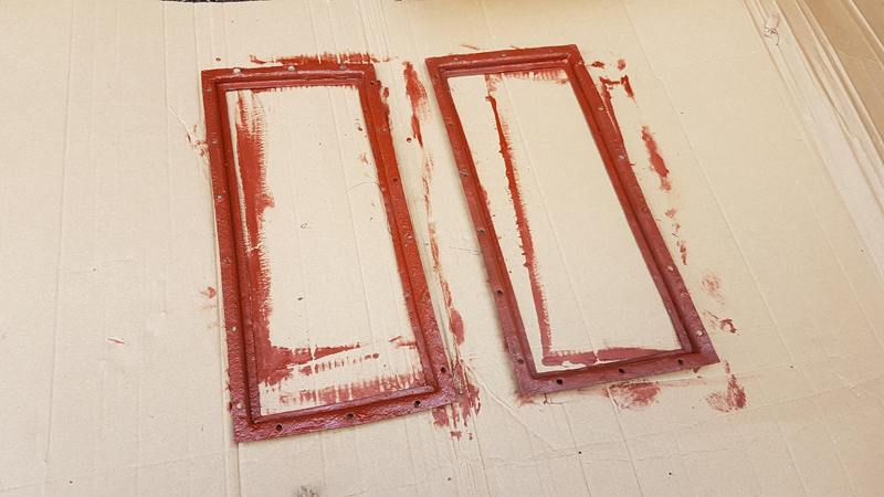 Once removed the window mastic previously used was removed from the frames and Ducket, the bare metal areas were then red oxided before new mastic and the glazing was fitted to each frame. These were then fitted to the Duckets and the mastic trimmed and shaped to the fill the gaps. Finally, the Bauxite and Cream top coats were reapplied.