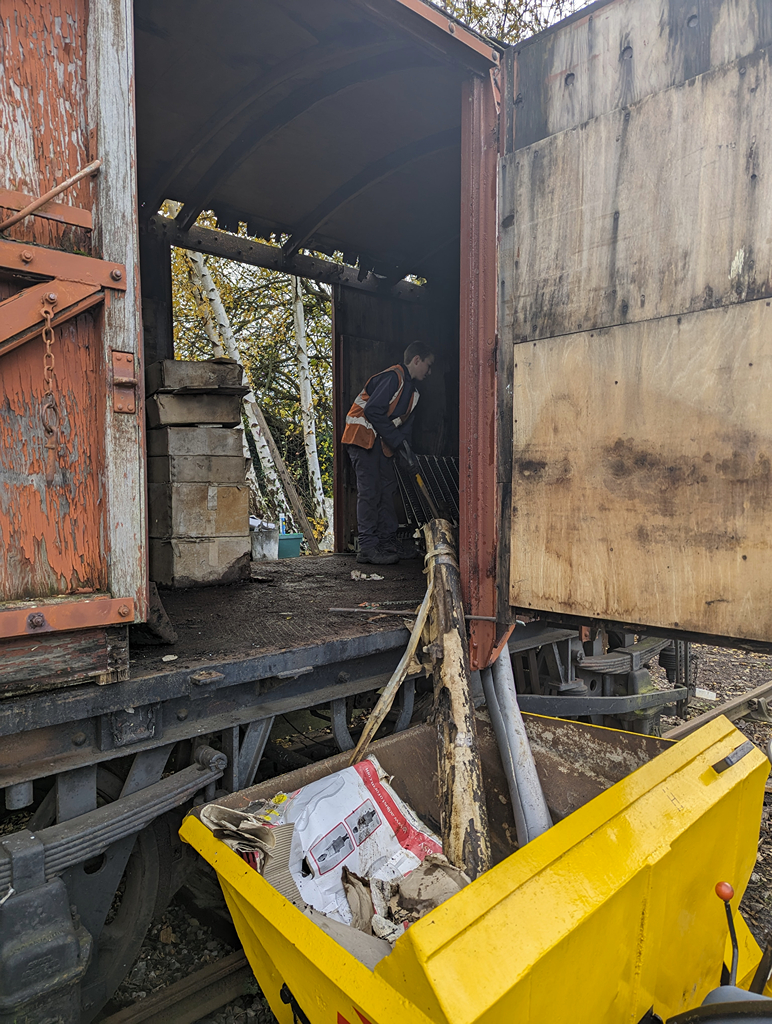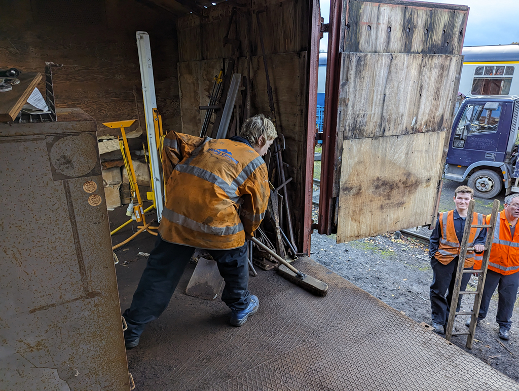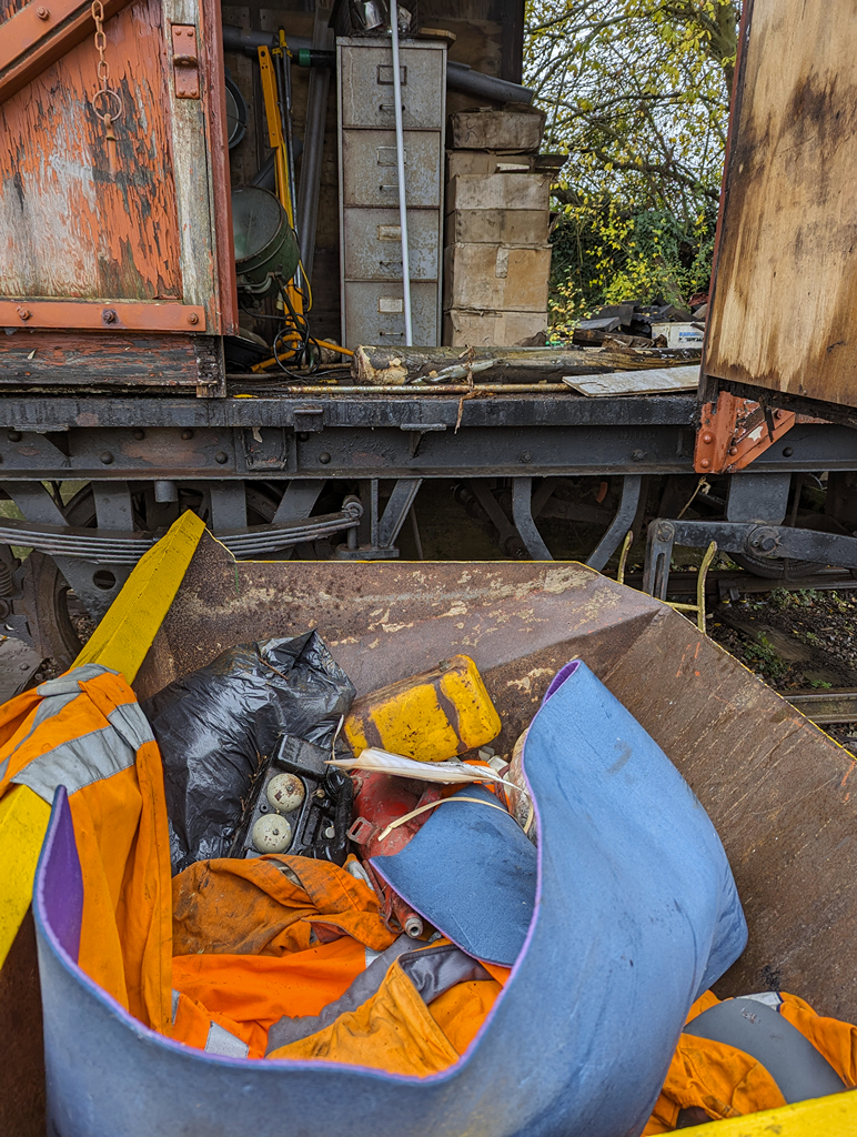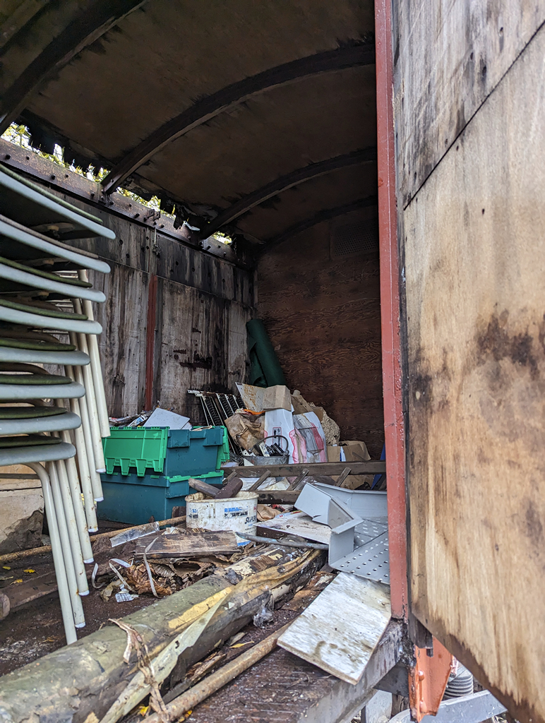 This week, the Ops team (thanks guys!) have delivered our next project after the tanks, Palvan B781908. With just me on site on Saturday, progress was limited but I was able to open the padlocks and free off the doors to get in. I got Danny positioned and started to off load some of the very damp surplus PPE and other items into the skip.