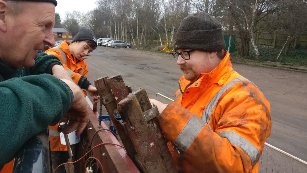On to Sunday and the task to fit the capping wood.  This was positioned rebated and bolted into position.  Once bolted up Jake applied a coat of gloss.