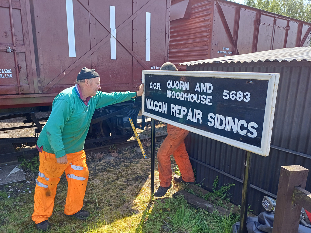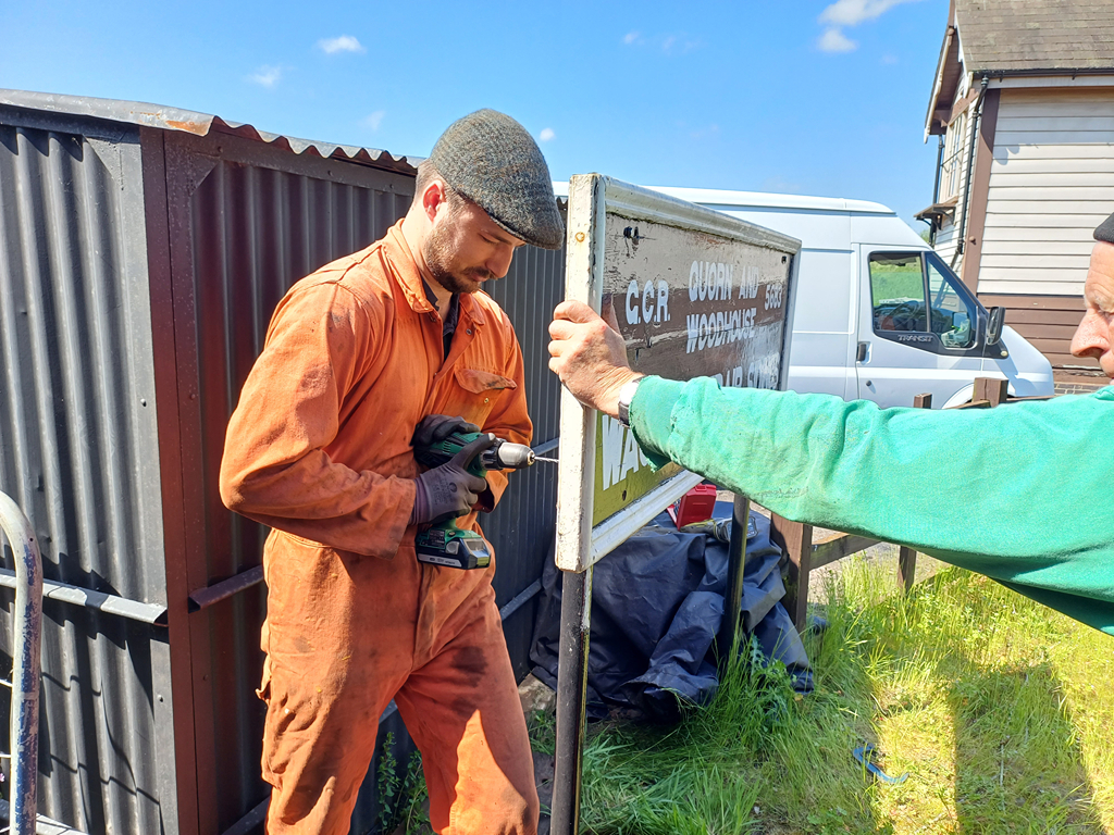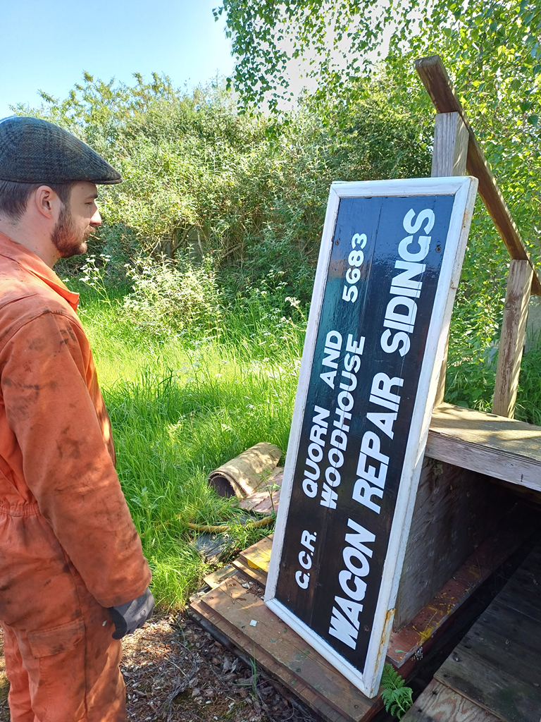 Nick and I relocated our other sign from our shed to the signposts next to the turntable. Charlie then painted the uncovered brown wood on the shed in black paint so this then matched the rest of the shed.