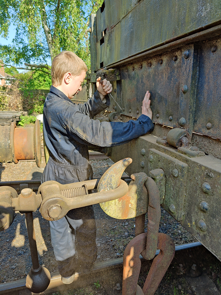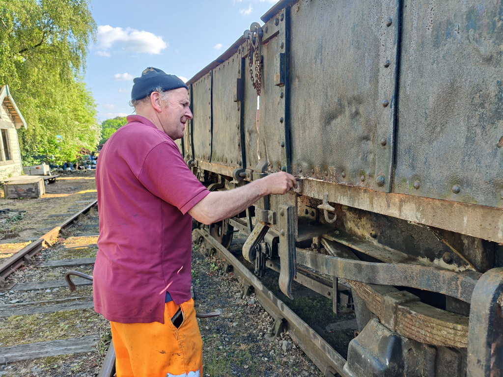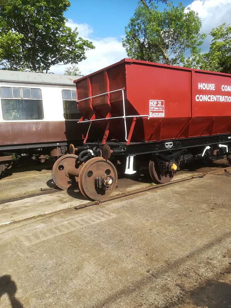During the week, using the wheelset Nick took to Rothley on the lorry, the C&W team swapped the failed wheelst on the Coal Hopper, B425356. I’ll cover more work on this wagon later on.
