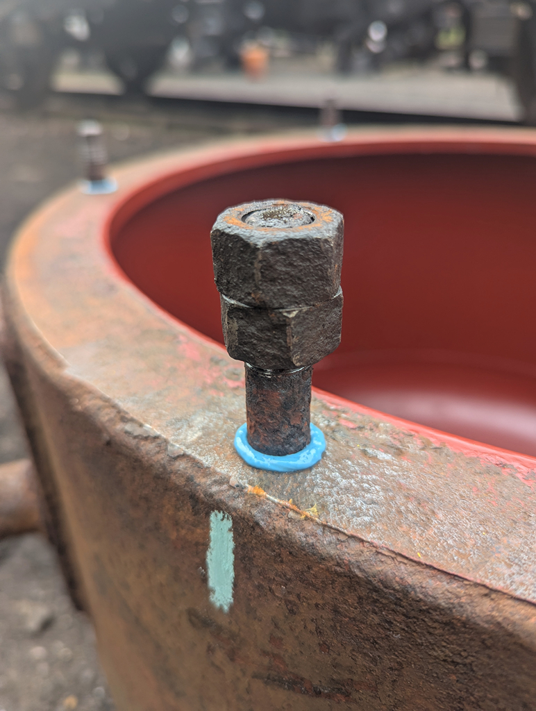 Nick and I moved onto re-assembling the vacuum cylinder ready for re-fitting to 3606, which involved removing the nuts from the studs and re-fitting the studs into the dome.