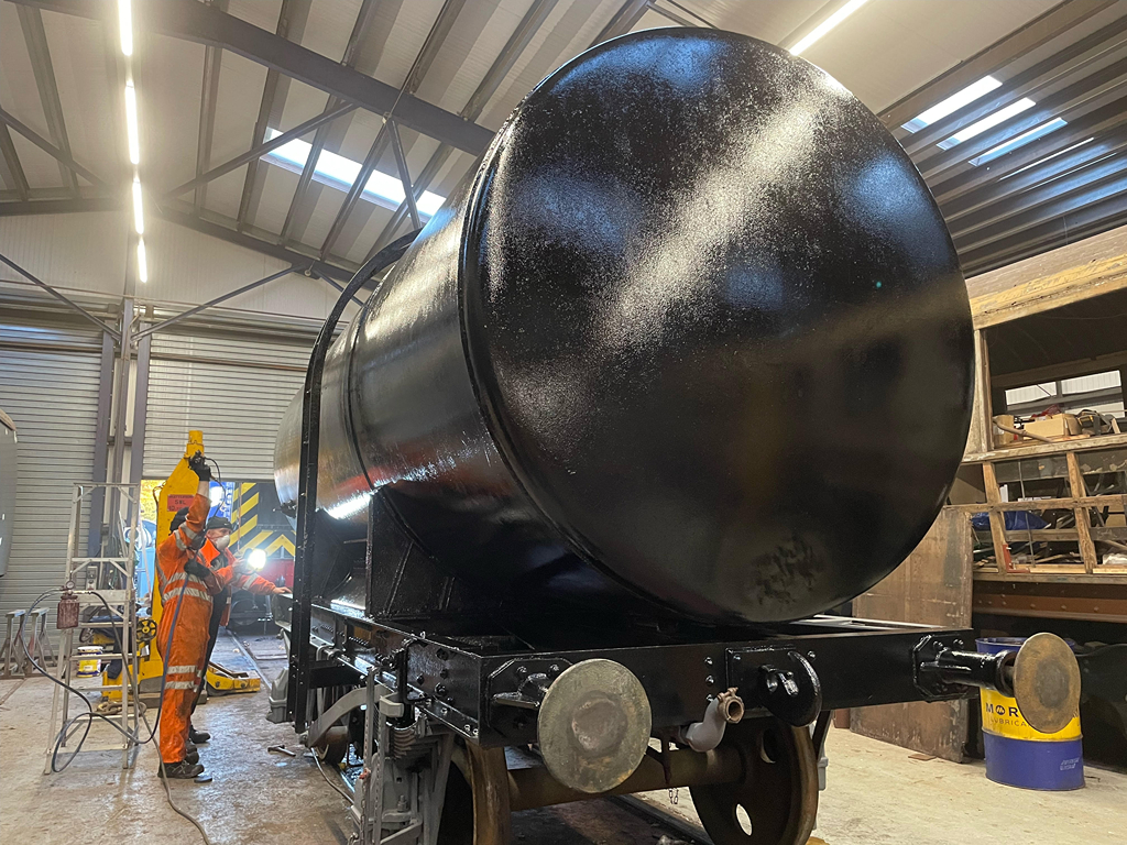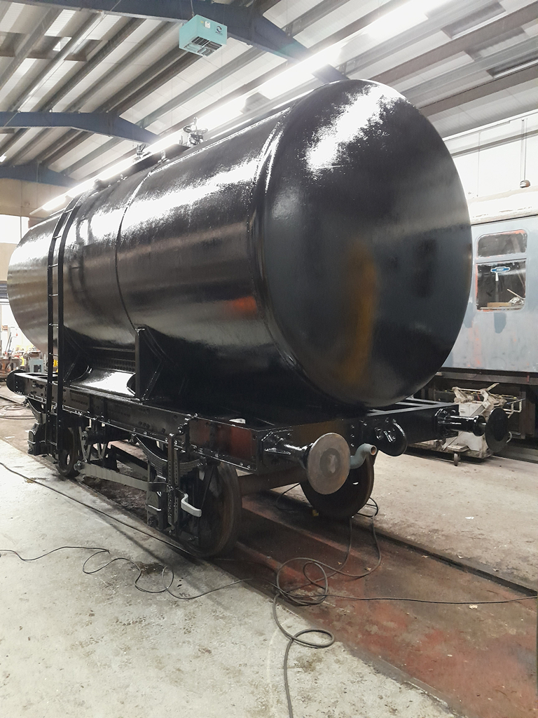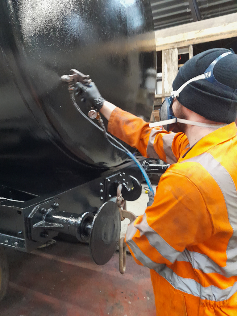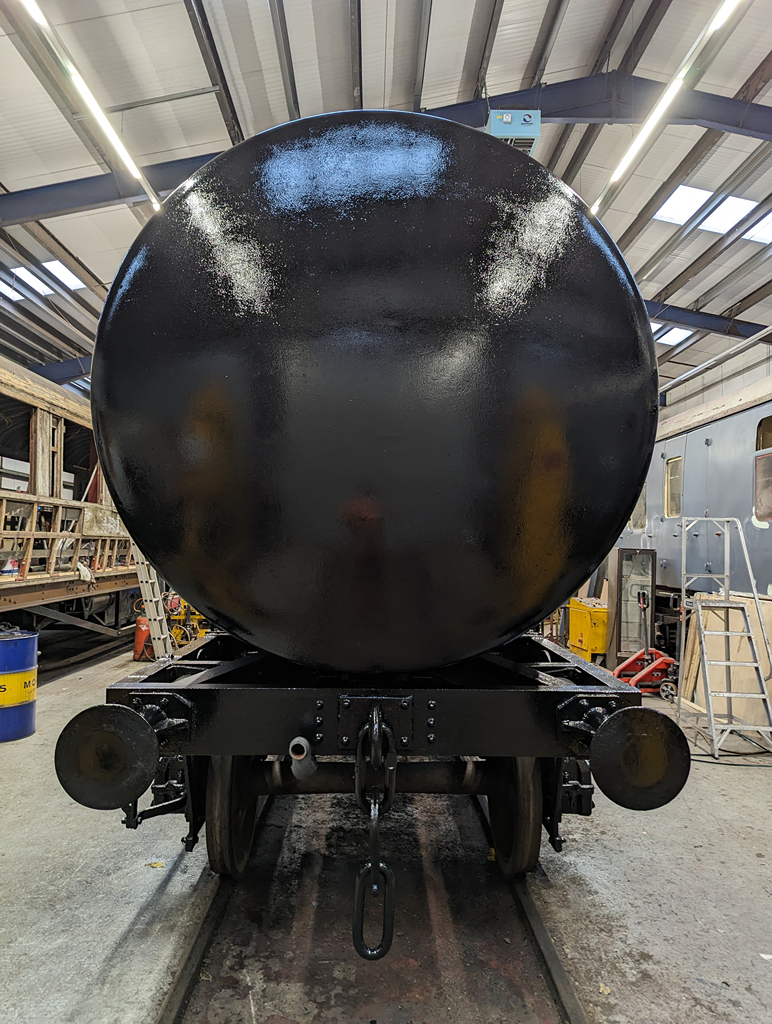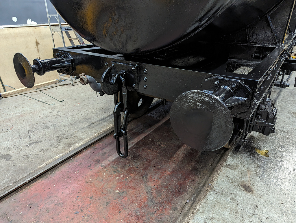 On Sunday, Nick and I continued starting by finishing the east side underframe, and then a second coat all over the tank.
