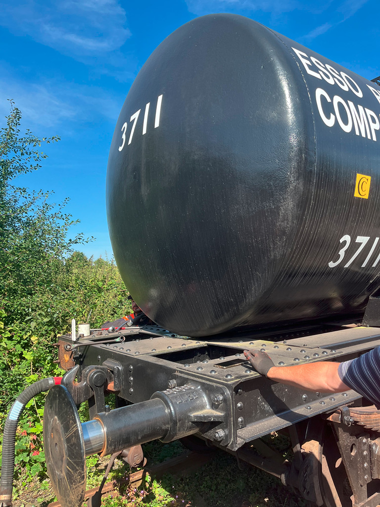 On Sunday with Mark, Tom, Oliver and Dan, we started off with exchanging the buffers on the tanks so they are fit to run at Railways At Work. All smooth sailing however one bolt got damaged so had to be re-tapped before the buffer was fitted.