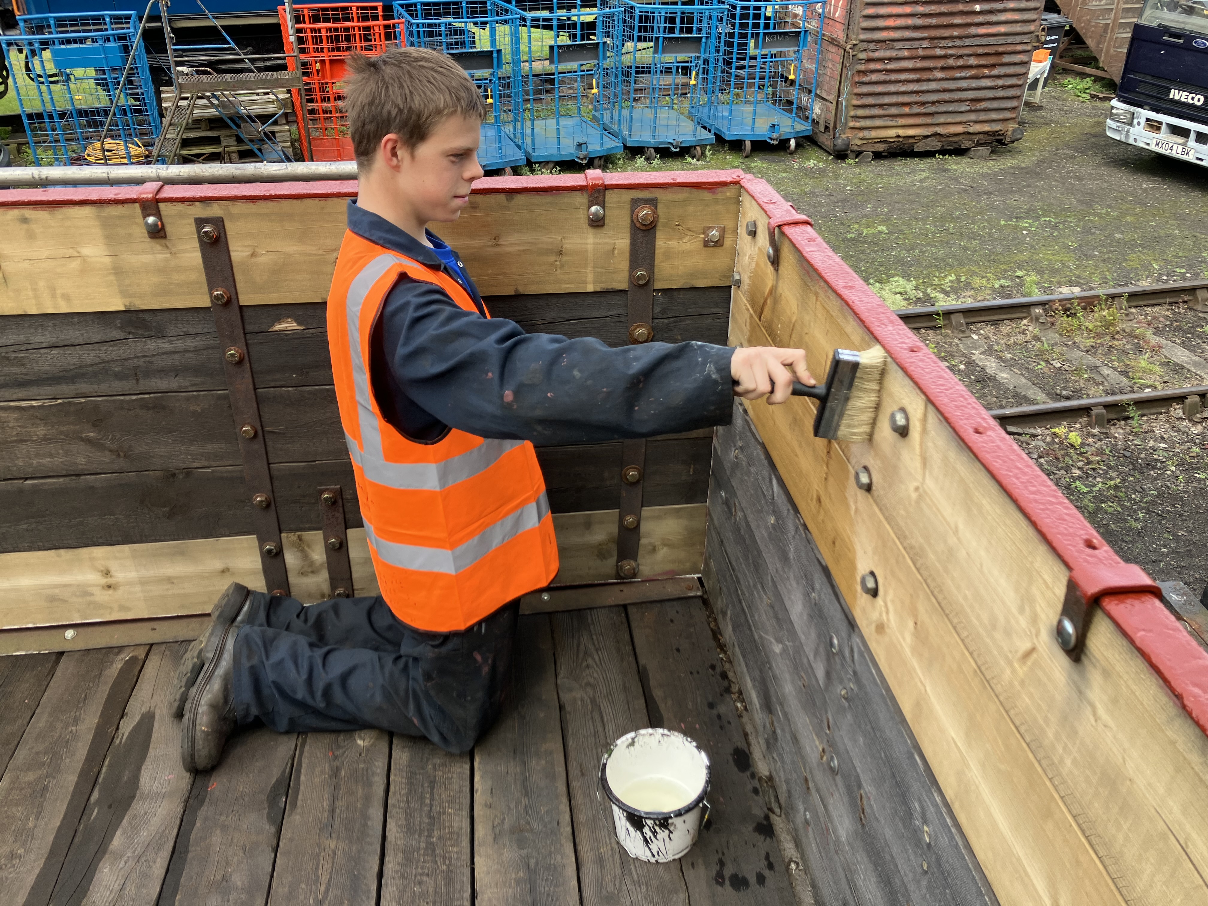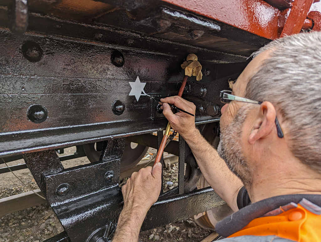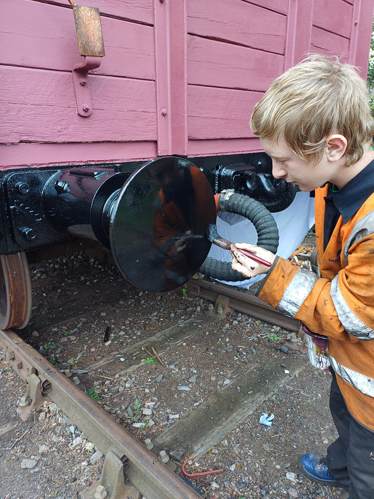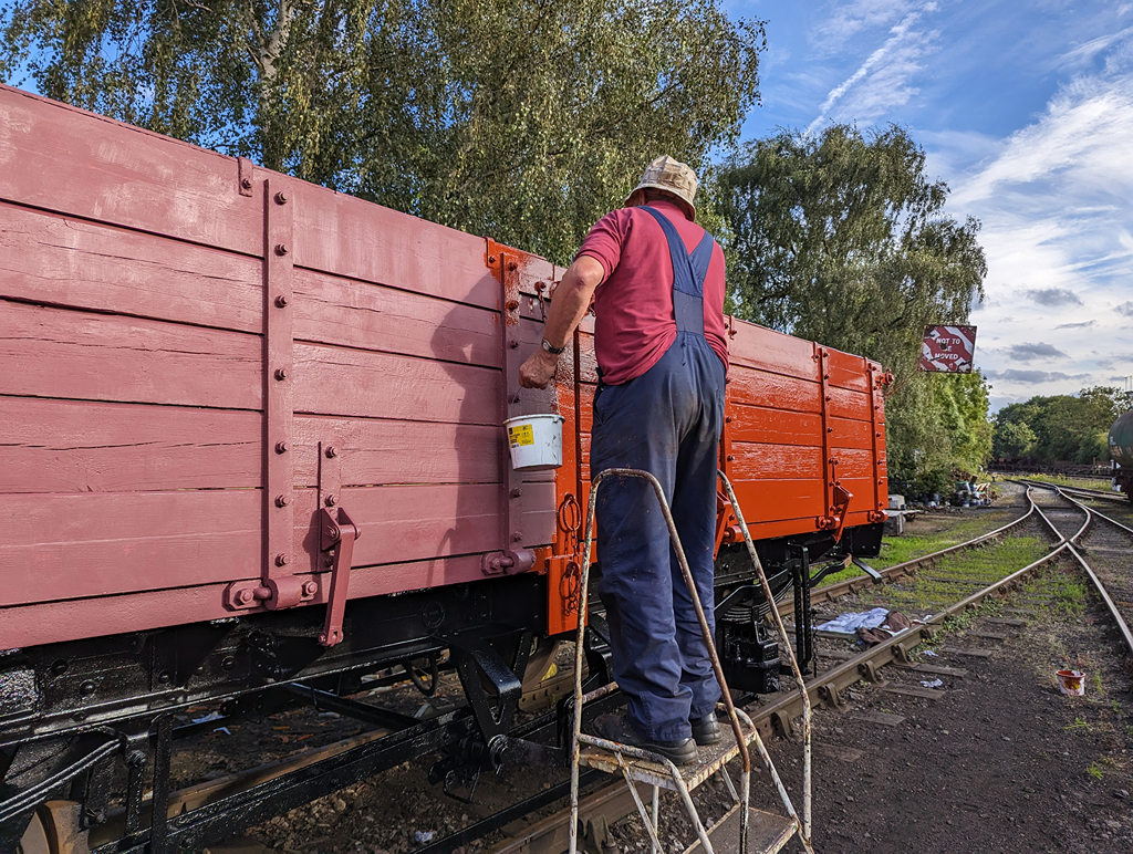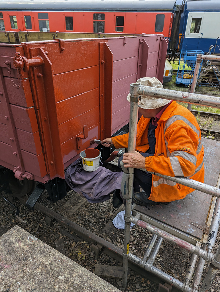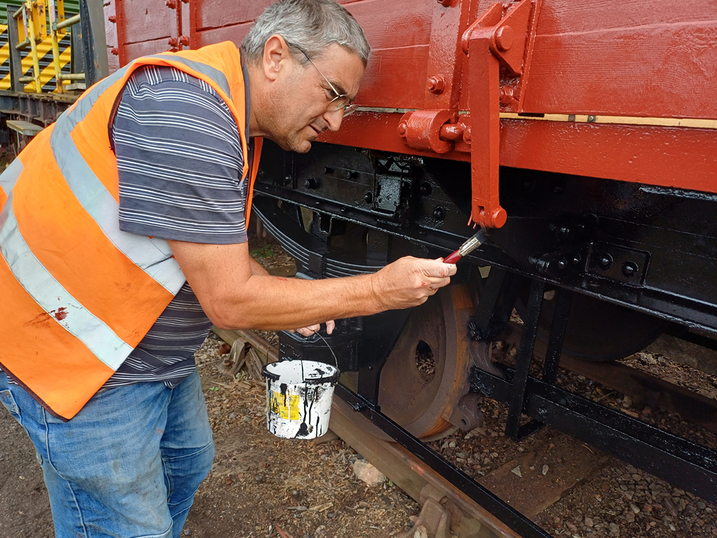 During the week, Nick and the lads primed and undercoated the east side doors and painted the underframe all round the wagon in black gloss, which looks really smart.