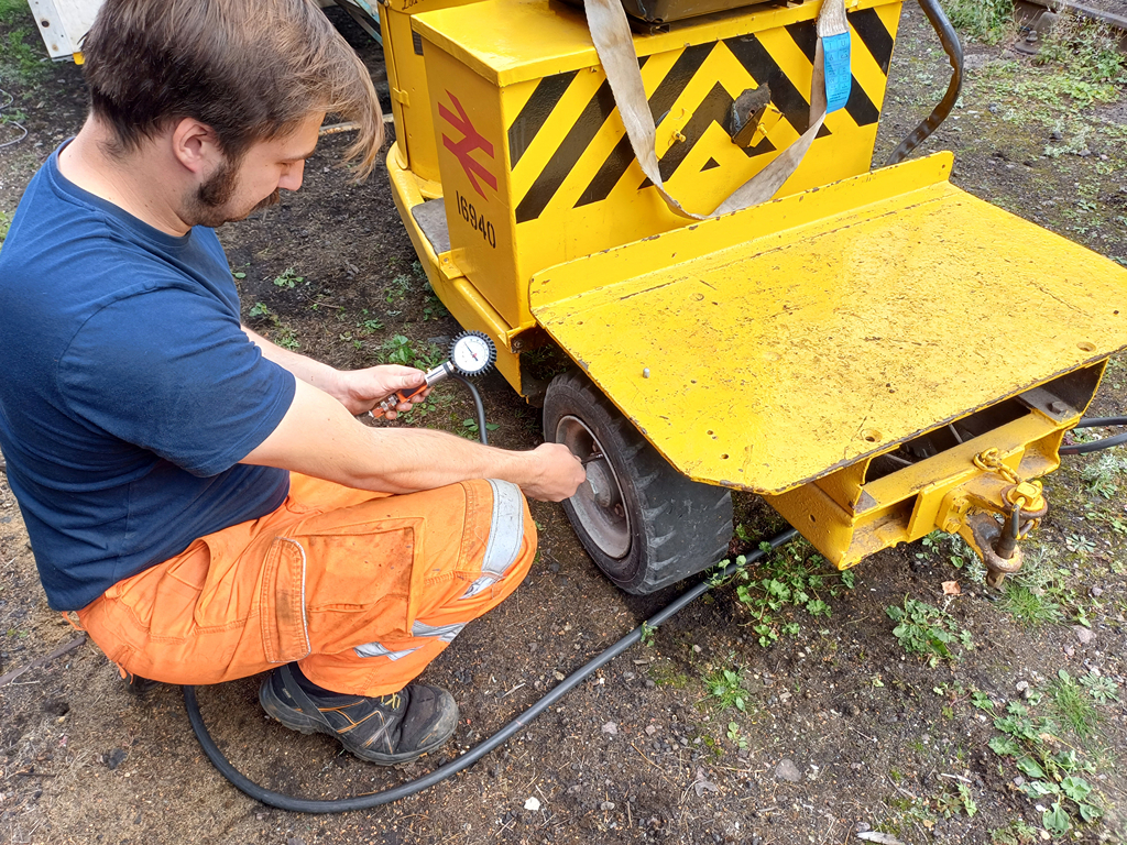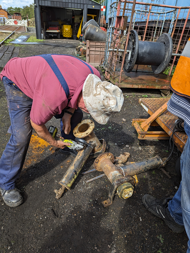 Monday was a much nicer day, so most people got stuck into the Pipe, though Dave and Barry did some odd jobs like pumping up the road vehicle tyres and re-shuffling them after Railways at Work.