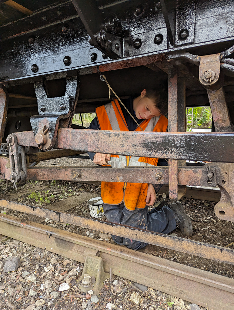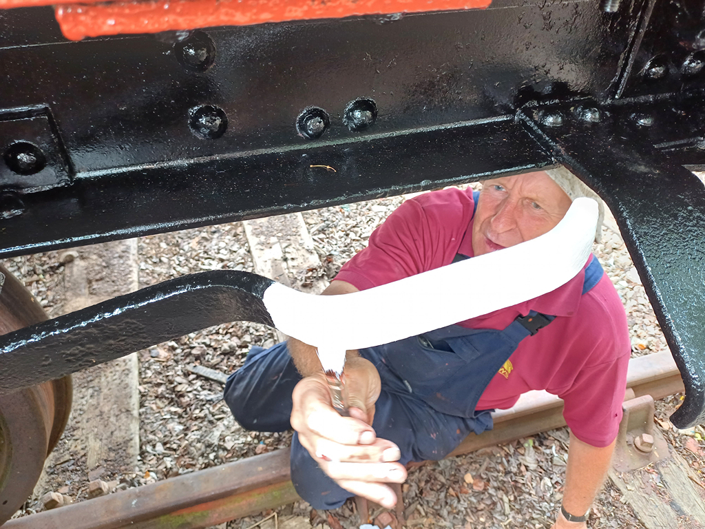 Nick, Dan, Mark and Thomas continued painting the underframe of the Pipe, concentrating on the lower west side and the head stocks.