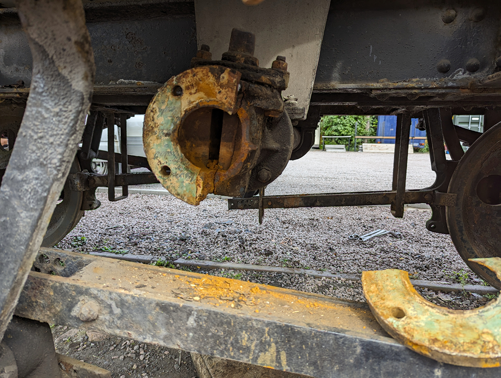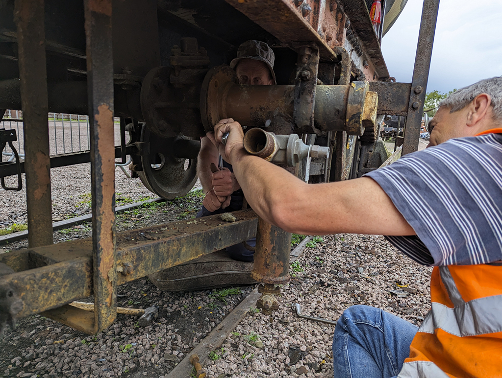 With the Pipe underframe finished, Nick and Mark went to look at tank A6090 to remove the last parts of the fuel dispensing system, which I ended up being roped into. The outfeed pipe on this wagon now looks more as it should, and there is one final job to do before the scrape and paint.