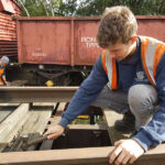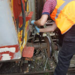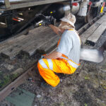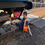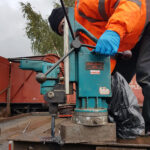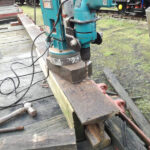 Whilst we were away, Ross, Jake, and Dave began preparing the sudo subframe for BD 4303 B.  Borrowing the mag drill from Carriage & Wagon they began the time-consuming task of drilling into the defected rail. The rail is not suitable to run trains on and is ideal as a stand-in subframe.