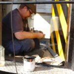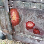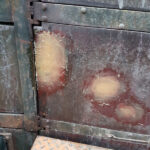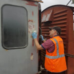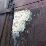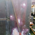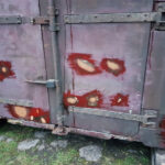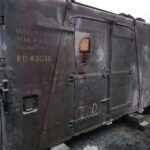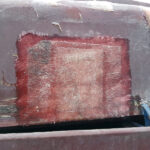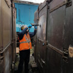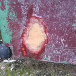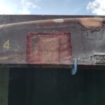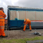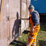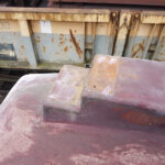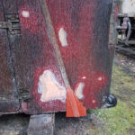 Work continues with the Containers and their “chariots”. The main focus being BD 4303 B. My task, looking at the substantial damage over the end doors. The outer layer of Fibreglass has cracked and split from the inner layer.