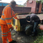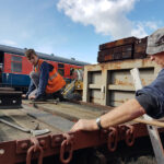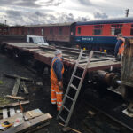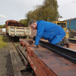 Whilst I was on the container, Nick and Jake continued with B505313 spot replacing rotten floor planks.  You may also notice 2 short lengths of flat-bottom rail, Our thanks go to the GCR P-way team for cutting these defected rails for us,  These will form the subframe of  BD 4303 B.