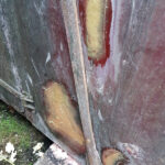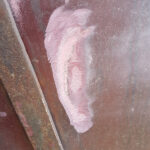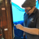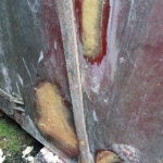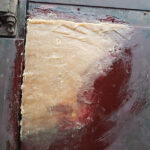 Dave and I continued with BD 3403 B. Gradually sanding down the areas filled, unfortunately, the door with the large repair had an area of the old fiberglass delaminate, this was cut out, filled and fiberglassed by Dave.