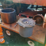 The next test and B505313 held for just under an hour but no change to B507489.  With only one 15″ rolling ring in stock B507489 was chosen to receive it. With the “Lighter” cylinder the decision was taken to drop it manually rather than use the loading shovel.