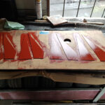 The weather, as usual, has been it’s changeable self.  With this in mind, we took some time to do a midweek spray. Nick, Ross and I masked and applied the Flame Red.