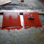 Once back at Quorn I looked at manufacturing filler pieces for the side straps of both containers, this is the area that connects the lifting frame to the subframe and both containers originals show signs of wastage. I measured, cut and primed the back of 8 pairs of filler pieces.
